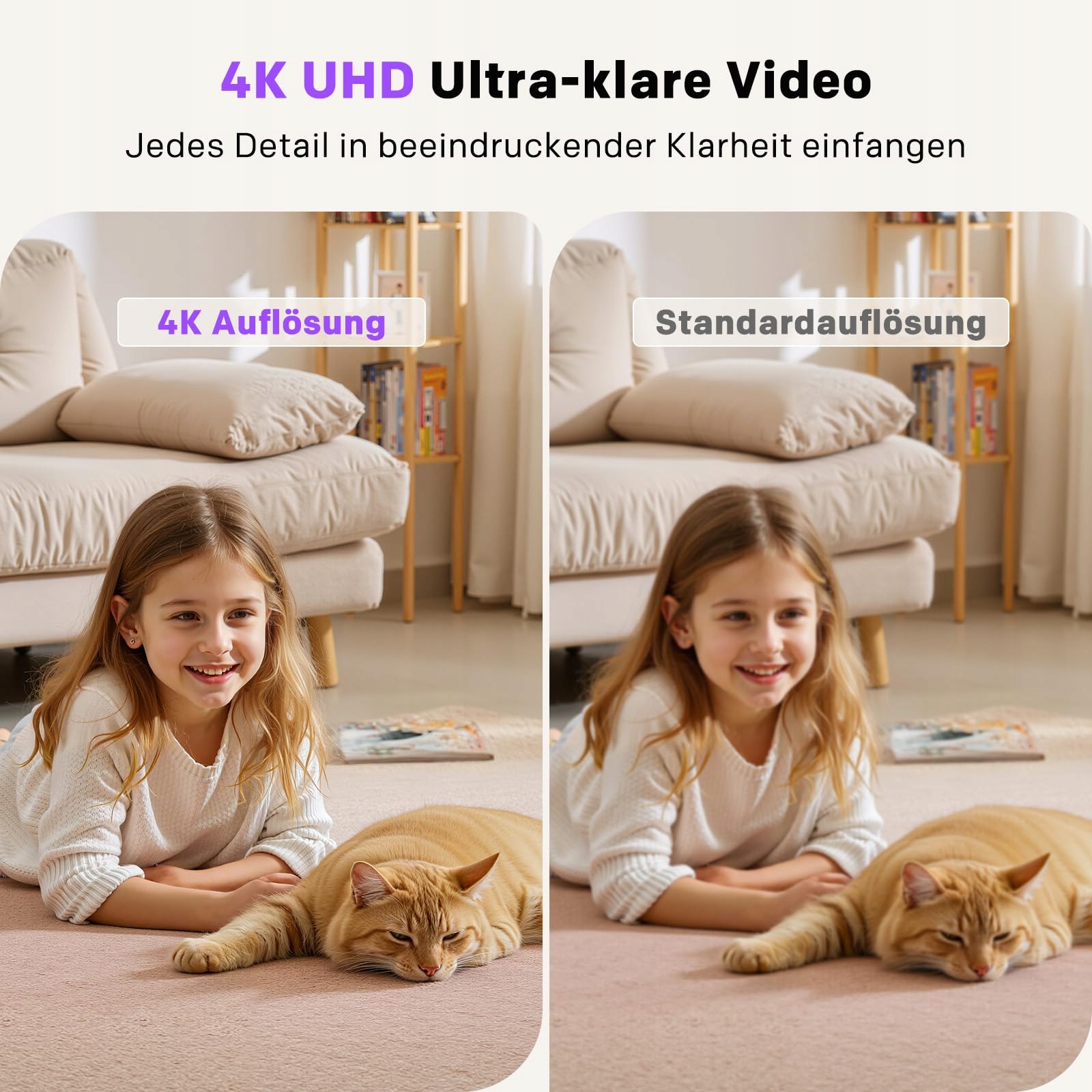 4K 8MP UHD i tryb nocny: Uchwyć każdy cenny moment w krystalicznie czystej rozdzielczości 4K-8MP, nawet przy prawie całkowitej ciemności. Idealna do monitorowania spokojnego snu Twojego dziecka lub psot Twojego zwierzaka – żaden szczegół Ci nie umknie. Kamera obraca się automatycznie, aby uchwycić każdy moment w ostrych detalach.