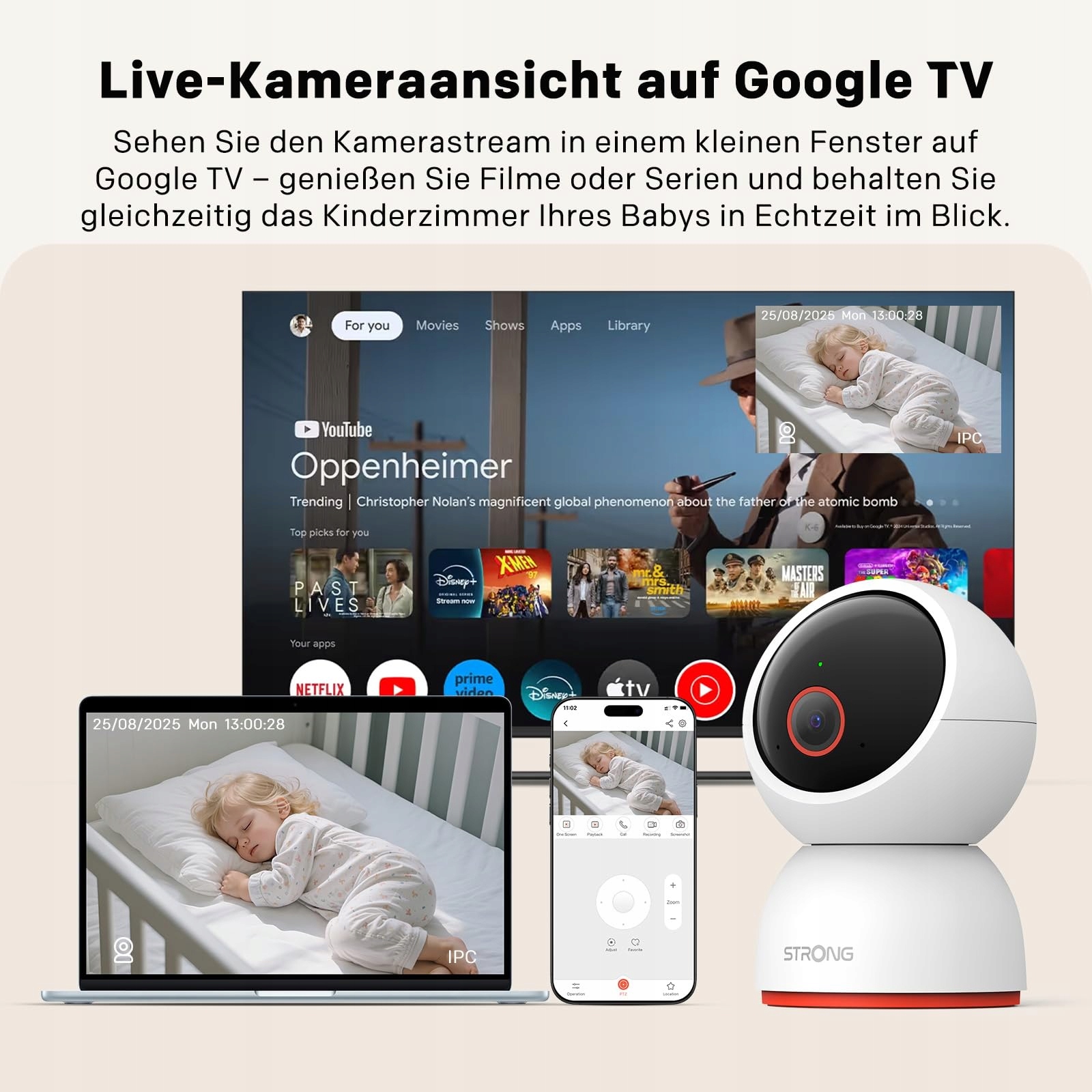 Stabilne Wi-Fi i pamięć w chmurze: Kamera STRONG obsługuje sieci 2,4 GHz i 5 GHz dla płynniejszego i stabilniejszego transmisji na żywo. Łatwo i bezpiecznie udostępniaj dostęp do kamery członkom rodziny lub opiekunom do wspólnego monitoringu. Obsługuje przechowywanie w chmurze oraz karty pamięci do 512 GB (karta pamięci nie jest dołączona).