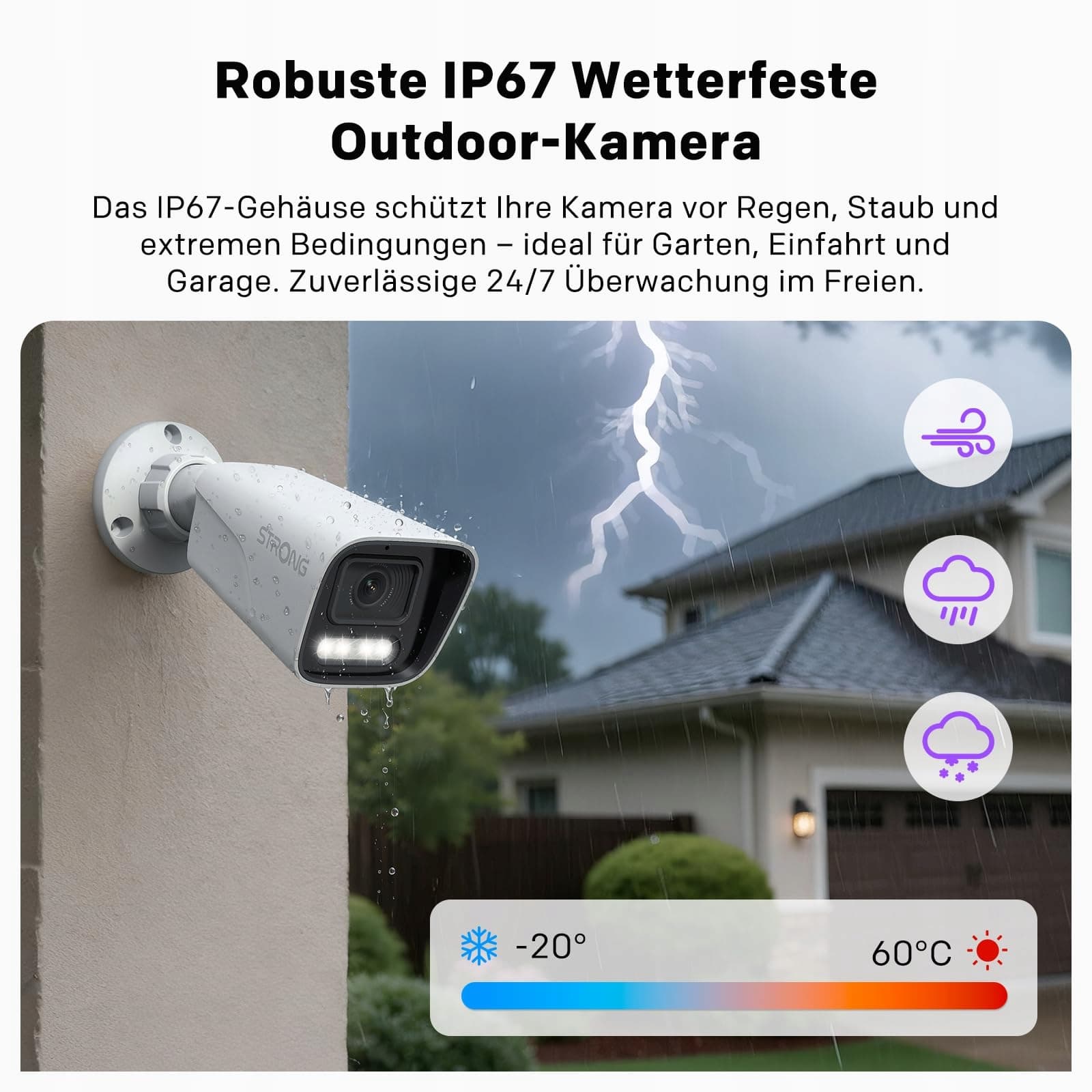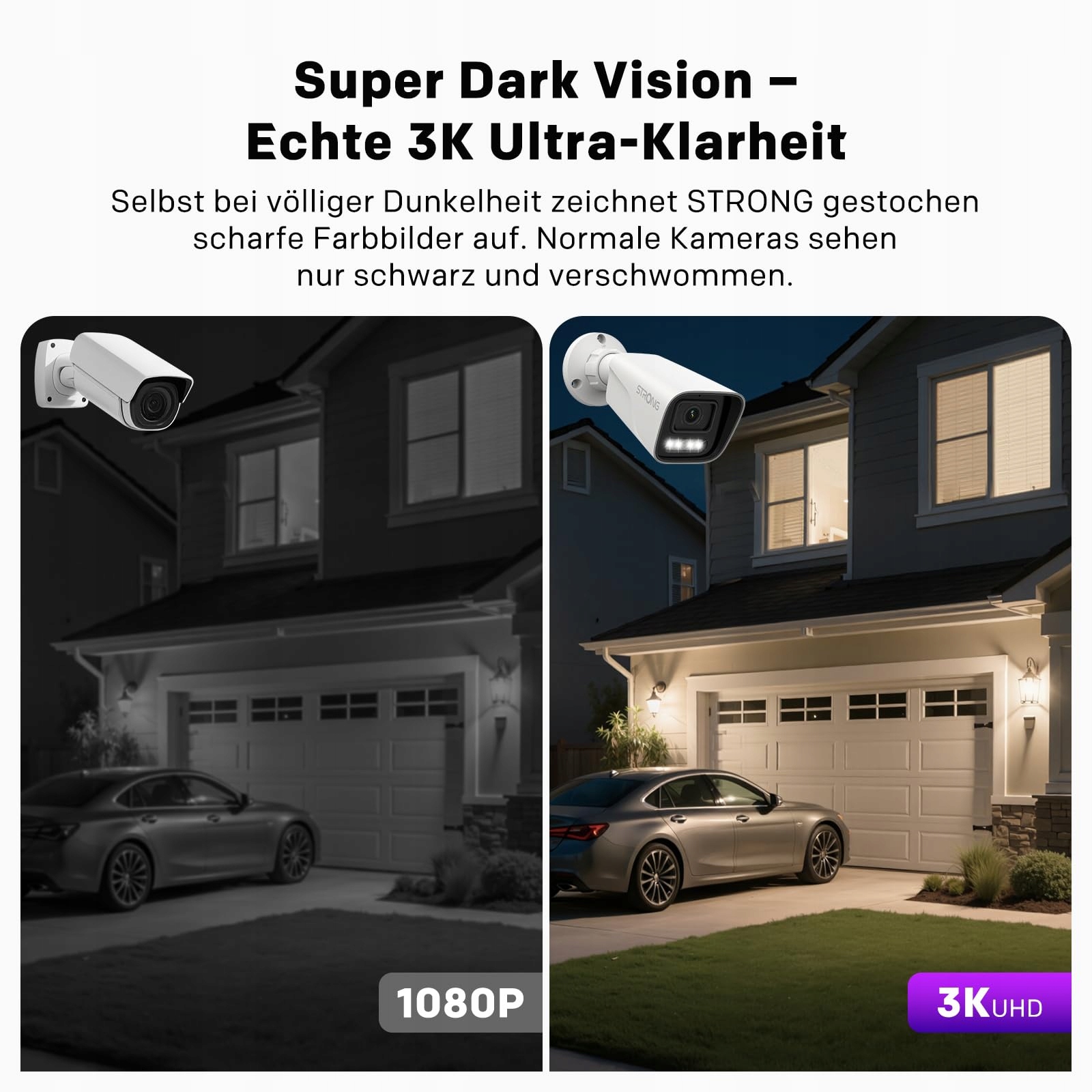 STRONG Kamera zewnętrzna 3K 5MP, Super Dark Vision, kamera bezpieczeństwa PoE z wykrywaniem ruchu i osób, ostrzeżenia o pojazdach, widzenie nocne, wodoodporna IP67, mikrofon, nagrywanie NVR i w chmurze, sterowanie przez aplikację