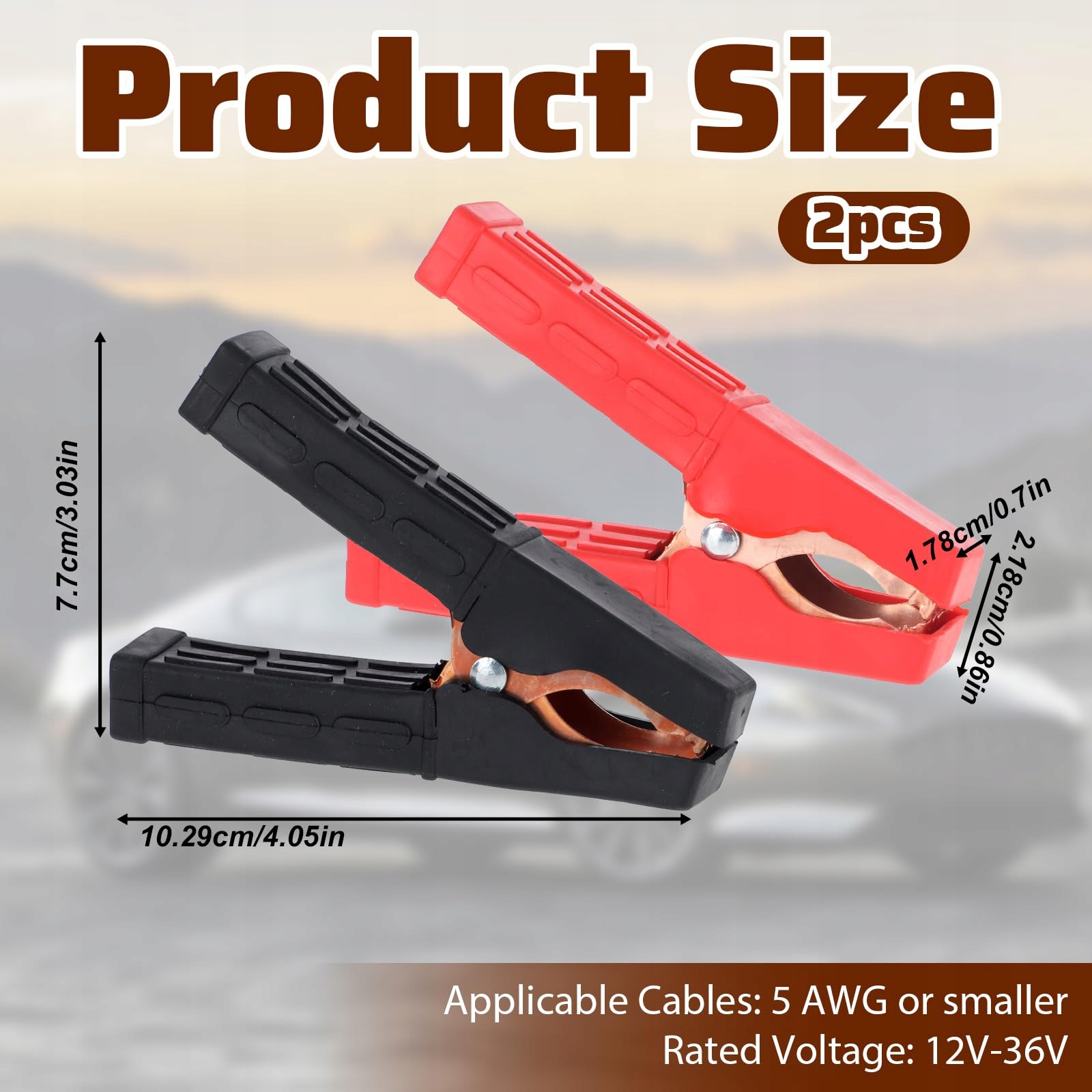 Wymiary produktu: Każdy zacisk krokodylkowy ma wymiary 10,5 x 7 x 1,9 cm i jest kompatybilny z przewodami 5 AWG lub mniejszymi. Dostępne są do 12 V, 24 V i 36 V, a maksymalny rozwarcie wynosi 1,1 cala