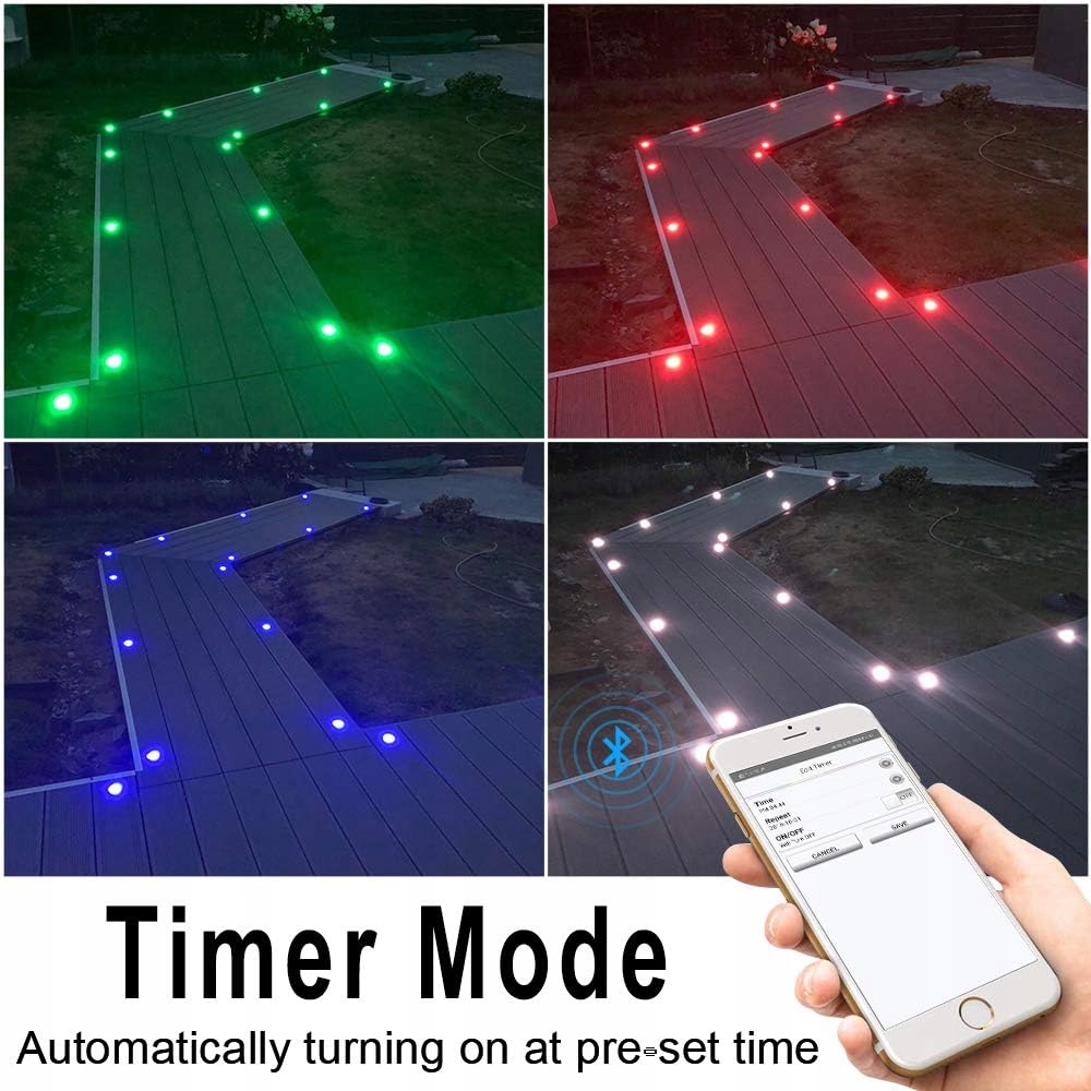 Ulepszone oświetlenie tarasowe 1: kompatybilne z Alexa (Echo). Jeśli jesteś w środowisku WIFI, steruj swoimi ledowymi wpuszczanymi reflektorami podłogowymi za pomocą głosu przez Alexę. Akceptuje polecenia takie jak ''włącz/wyłącz, zmień kolor, przyciemnij/rozjaśnij światło''. Jeśli otoczenie nie ma Wi-Fi, możesz również bezpośrednio połączyć się z aplikacją przez sieć komórkową, aby kontrolować ledowe lampy podłogowe na zewnątrz.