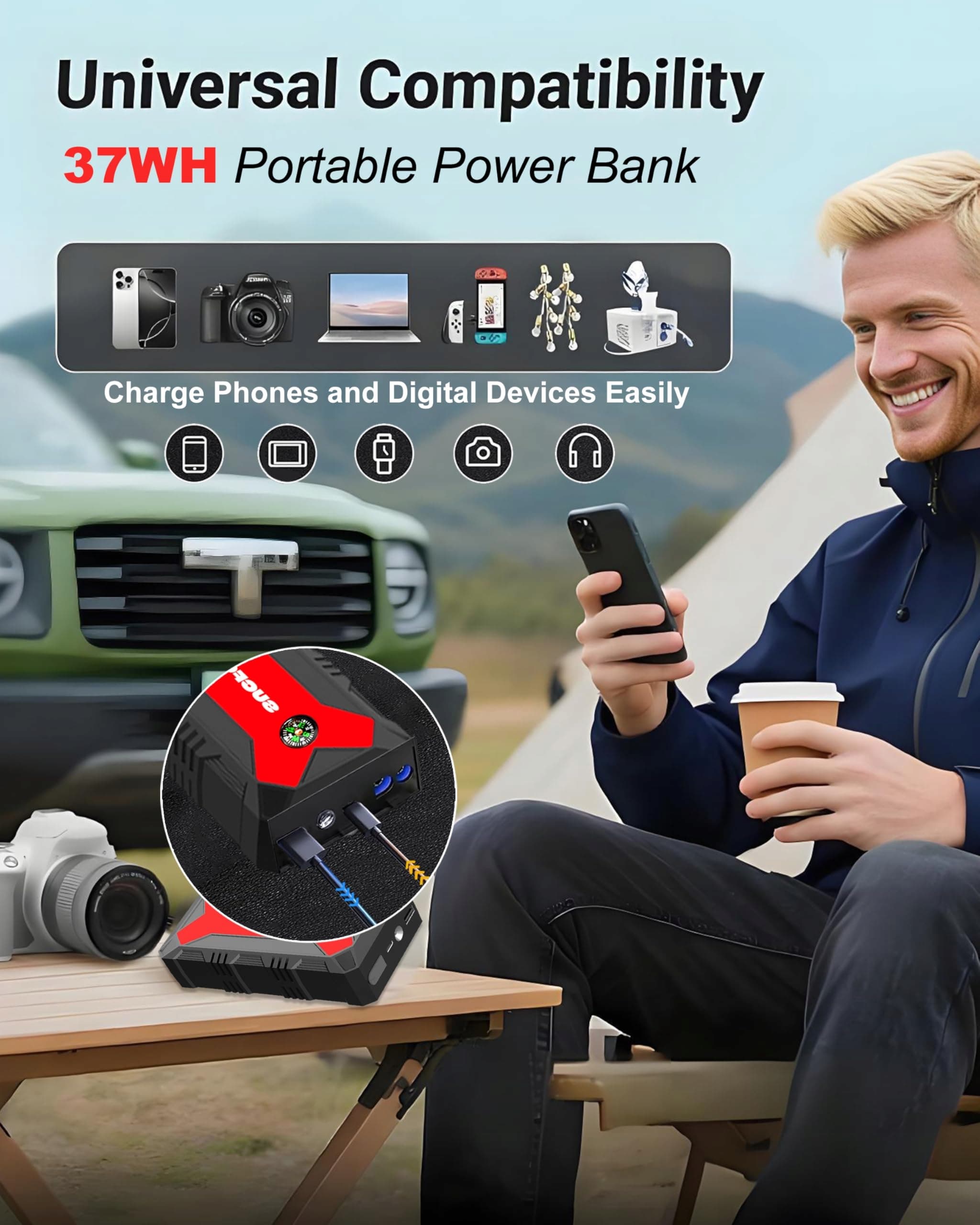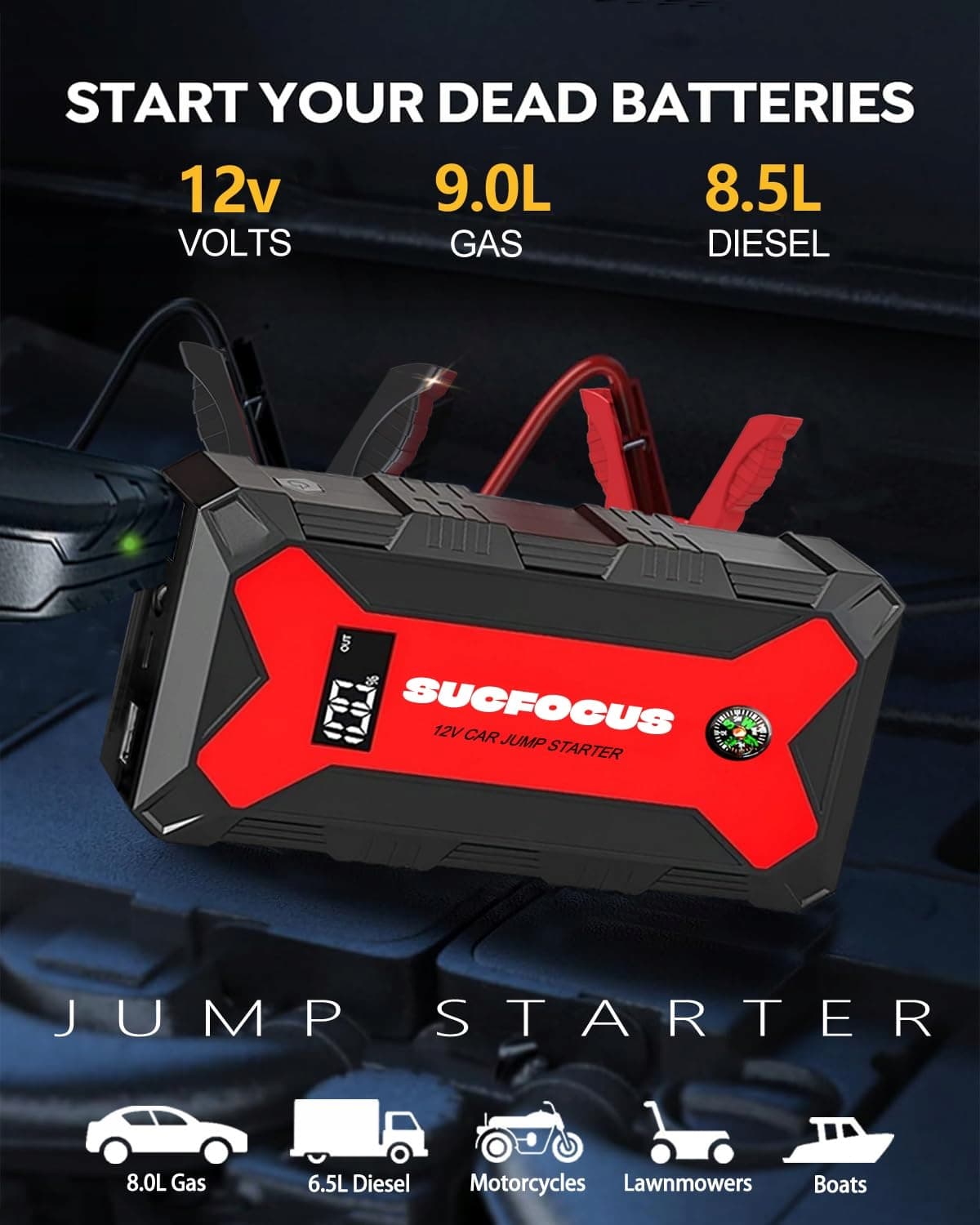 SUCFOCUS Powerbank Rozruchowa 4000A Do Samochodów Benzyna Diesel USB LED | Premium Supply