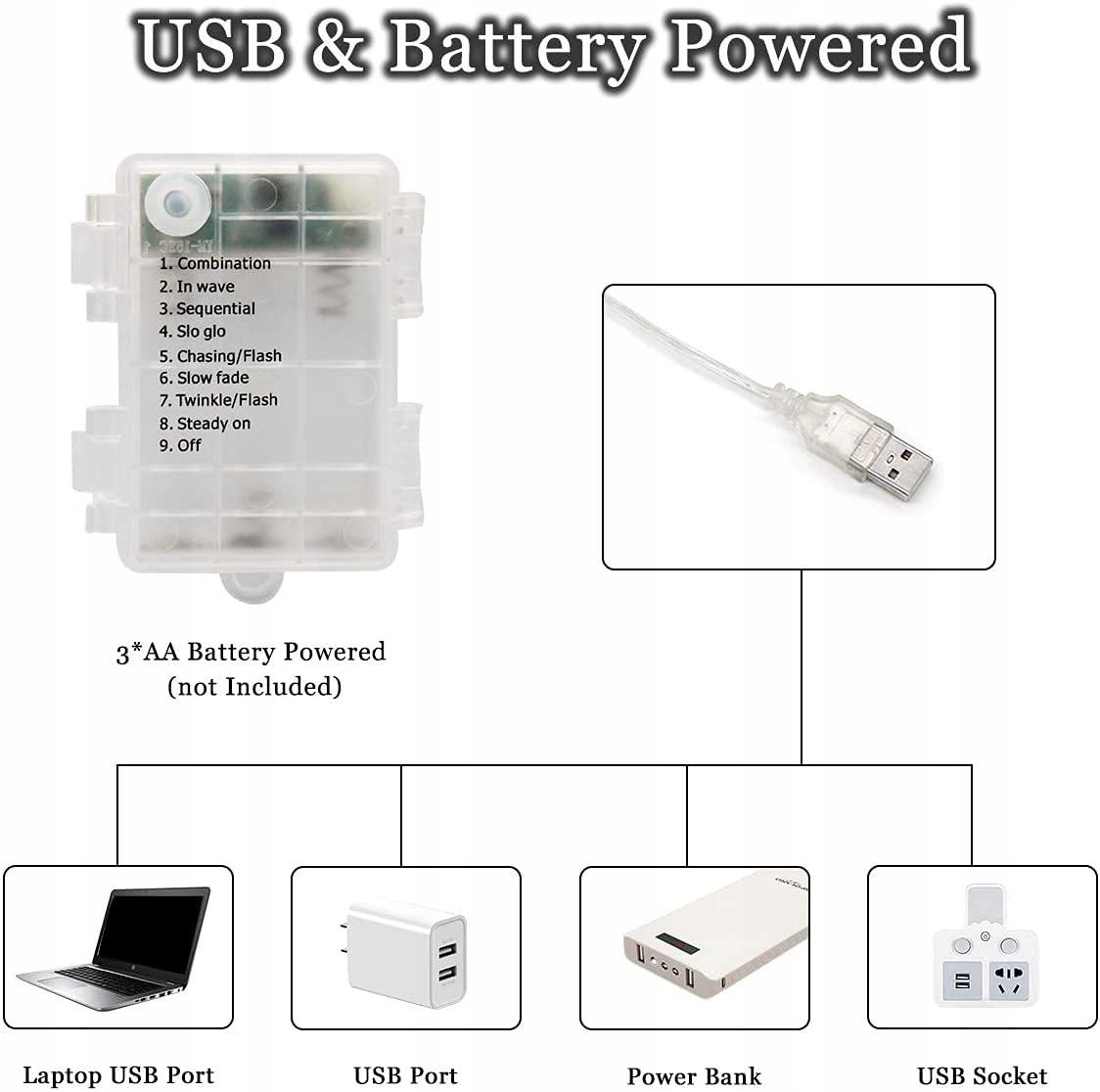 🌟[USB & Zasilanie Bateryjne]Kurtyna świetlna może być zasilana nie tylko przez USB, ale także przez 3 baterie AA. Możesz wybrać preferowaną metodę ładowania.