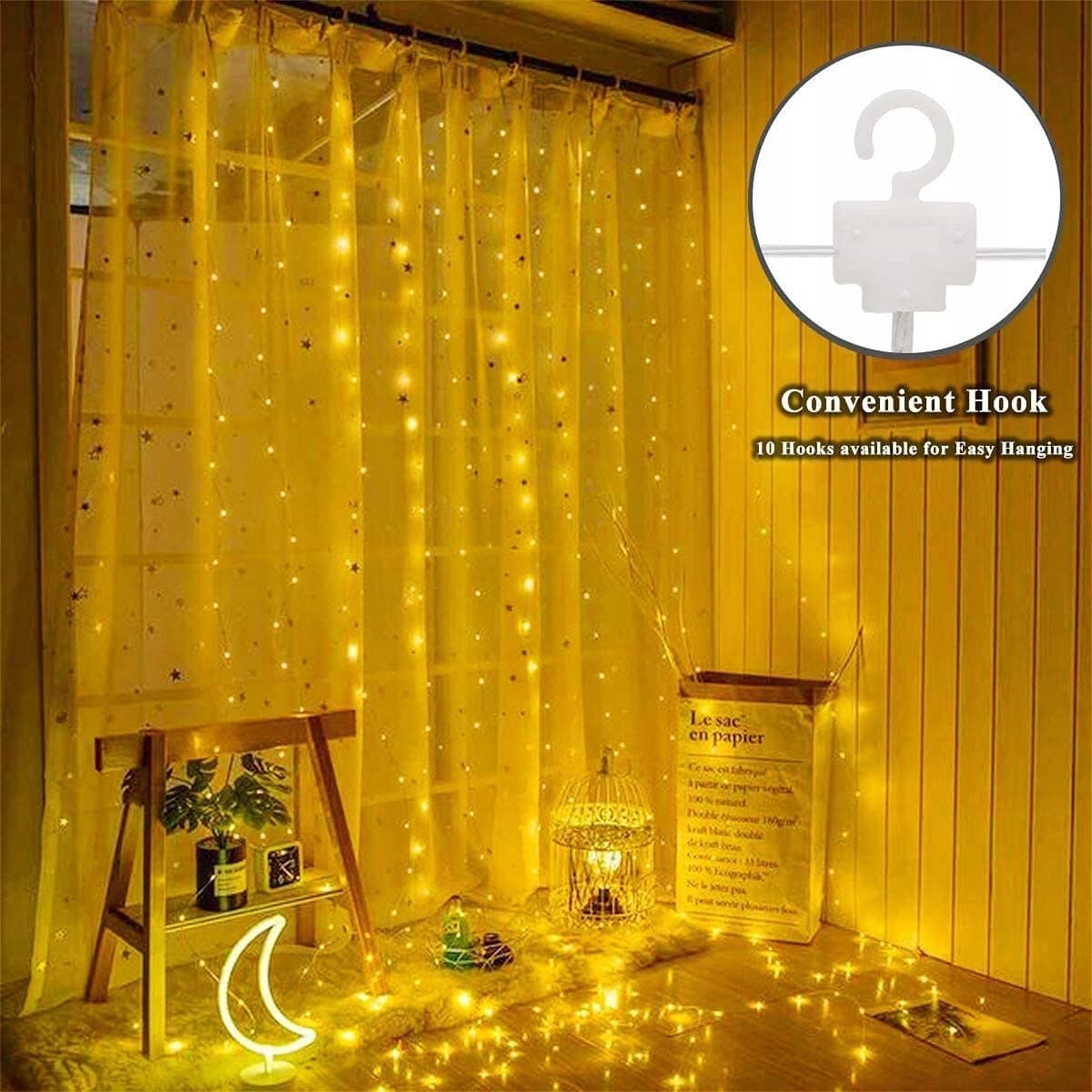🌟[300LED Kurtyna Świetlna]3m * 3m wiszące łańcuchy świetlne z 10 haczykami i 3m głównym przewodem. Możesz powiesić kurtynę świetlną w dowolnym miejscu.