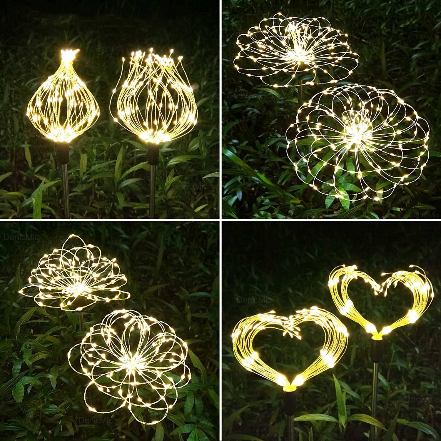 [Kreatywne DIY oświetlenie ogrodowe] lampa solarna na zewnątrz wykorzystuje 30 elastycznych, wysokiej jakości drutów miedzianych i 120 diod LED. Można je łatwo wyginać w dowolne kształty, takie jak sztuczne ognie, kwiaty, diabelski młyn, serce, spirala, kula. Wierzę, że masz lepszy pomysł na stworzenie tych solarnych świateł na zewnątrz.