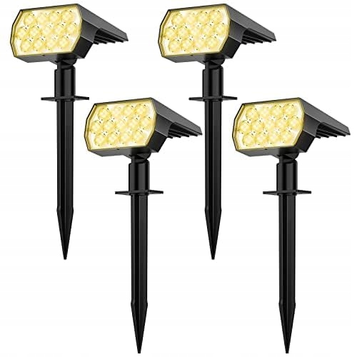 Lampy solarne na zewnątrz, 65 LED super jasna lampa solarna do ogrodu, wodoodporne lampy solarne na zewnątrz, 3 tryby jasności reflektora solarnego, 3000K ciepłe białe lampy ogrodowe na ścieżkę, podwórko, garaż (4 sztuki)
