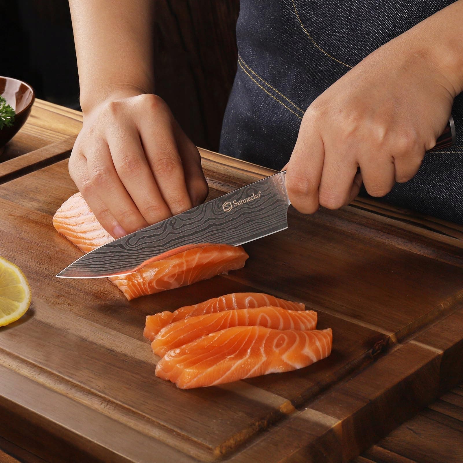 Noż kuchenny Sunnecko 14cm - Profesjonalny nóż kuchenny ze stali nierdzewnej z rękojeścią z drewna Pakkaholz, uniwersalny nóż kuchenny, ostry nóż z pudełkiem prezentowym