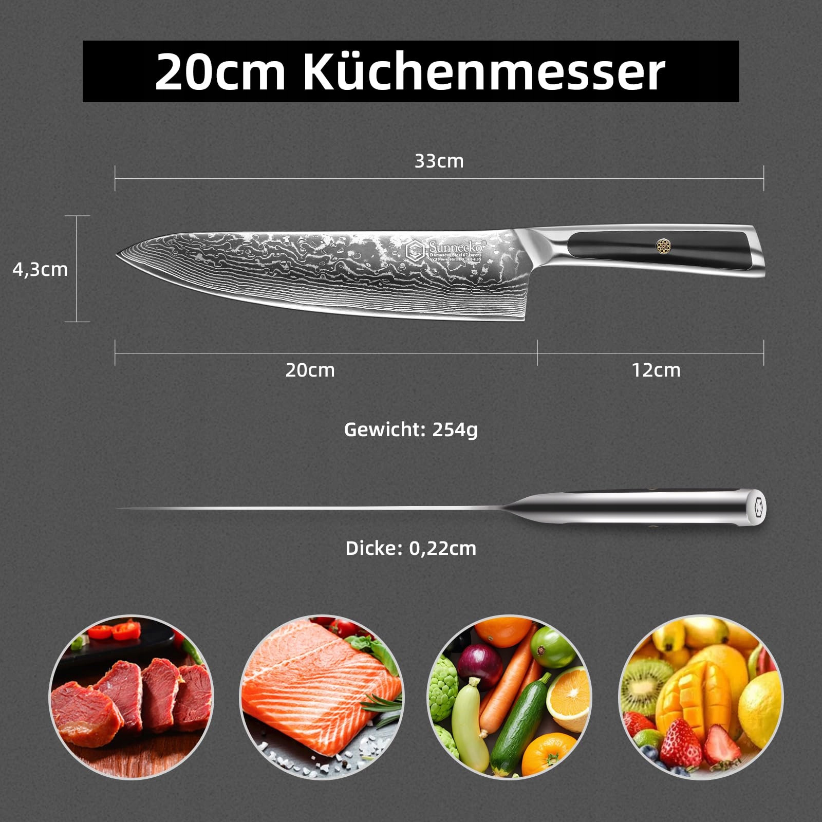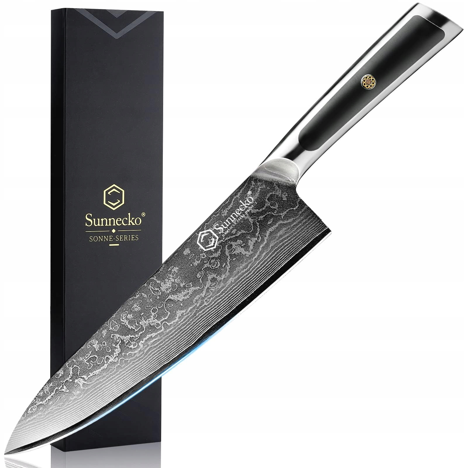 SUNNECKO Nóż Kuchenny 20cm Damast Stal Ergonomiczny Uchwyt