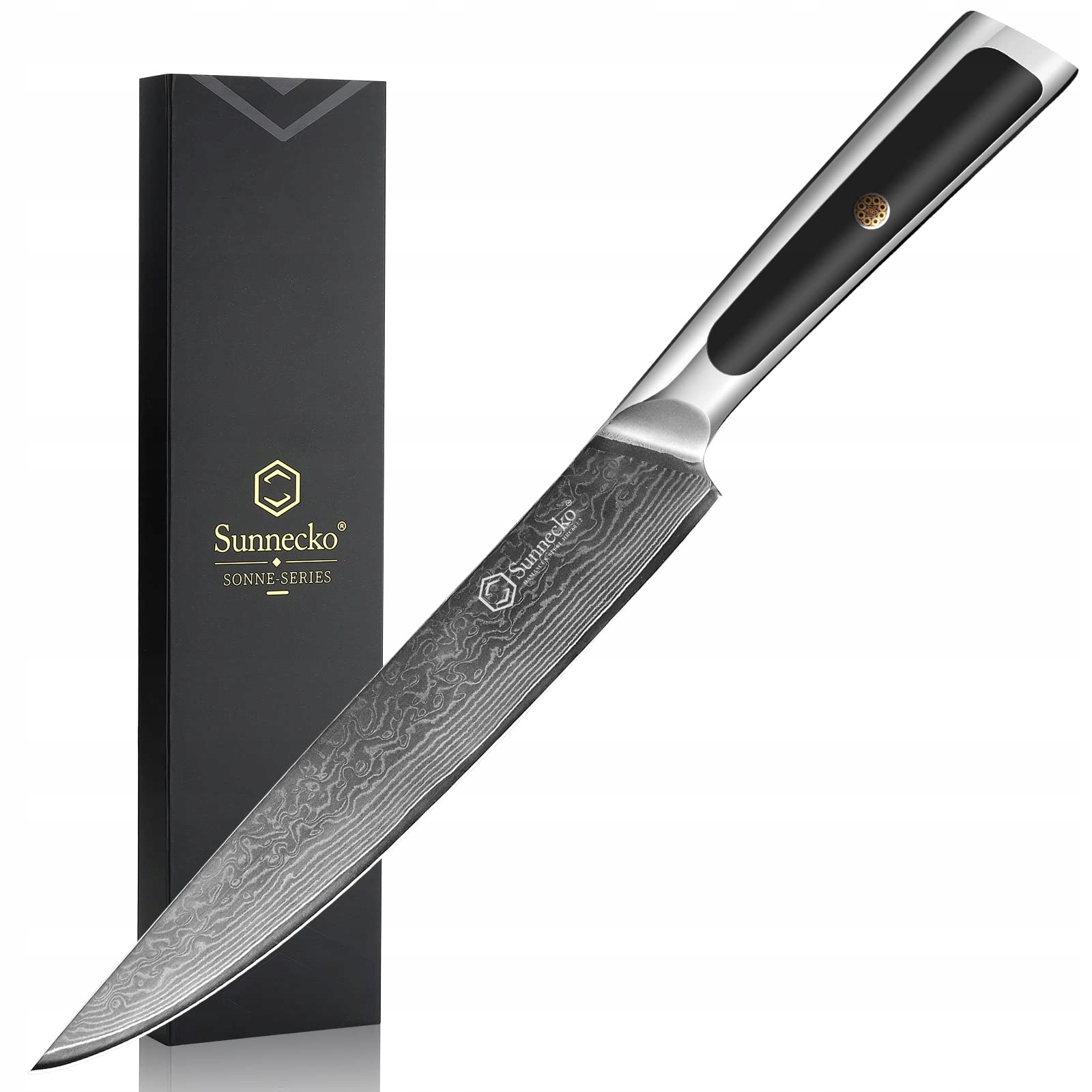 SUNNECKO Nóż Kuchenny 8 Calowy Damastowy Do Mięsa Z Wzorem Fali