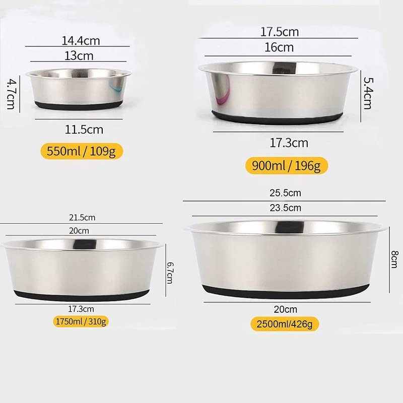 [Rozmiar metalowej miski dla psa]Średnica: 25,5 cm (10 cali). Wysokość miski: 8 cm (3,93 cala), może pomieścić 2,5 litra/84 oz jedzenia. Odpowiednia dla dużych zwierząt.