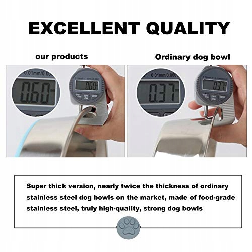 Materiał: Miska dla psa wykonana jest z ultra grubej stali nierdzewnej, bezpieczna i neutralna smakowo, trwała i łatwa do czyszczenia. W porównaniu do plastiku jest bardziej przyjazna dla środowiska, bezpieczna, odporna na wirusy i chroni karmę małych zwierząt. Zestaw misek dla psa przeszedł rygorystyczne kontrole jakości.