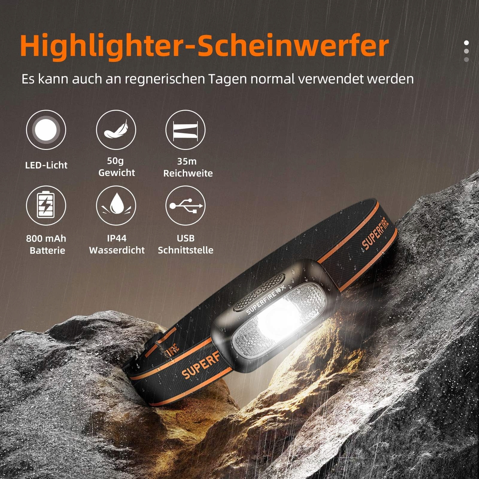 SUPERFIRE Latarka Czołowa LED USB 5 Trybów Wodoodporna Dla Dorosłych i | Premium Supply