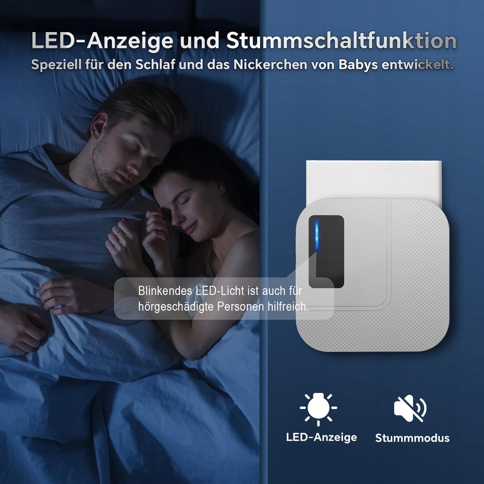 【Indywidualny dźwięk, elastyczne tryby】Ciesz się precyzyjną kontrolą z 5 poziomami głośności do 110 dB, idealnymi dla osób z ubytkami słuchu lub seniorów. Po prostu przełączaj między trybem tylko LED a trybem dzwonka + LED i wybierz spośród 55 melodii dla indywidualnych powiadomień. Twoje ostatnie ustawienia będą zapisywane dla nieprzerwanej wygody.
