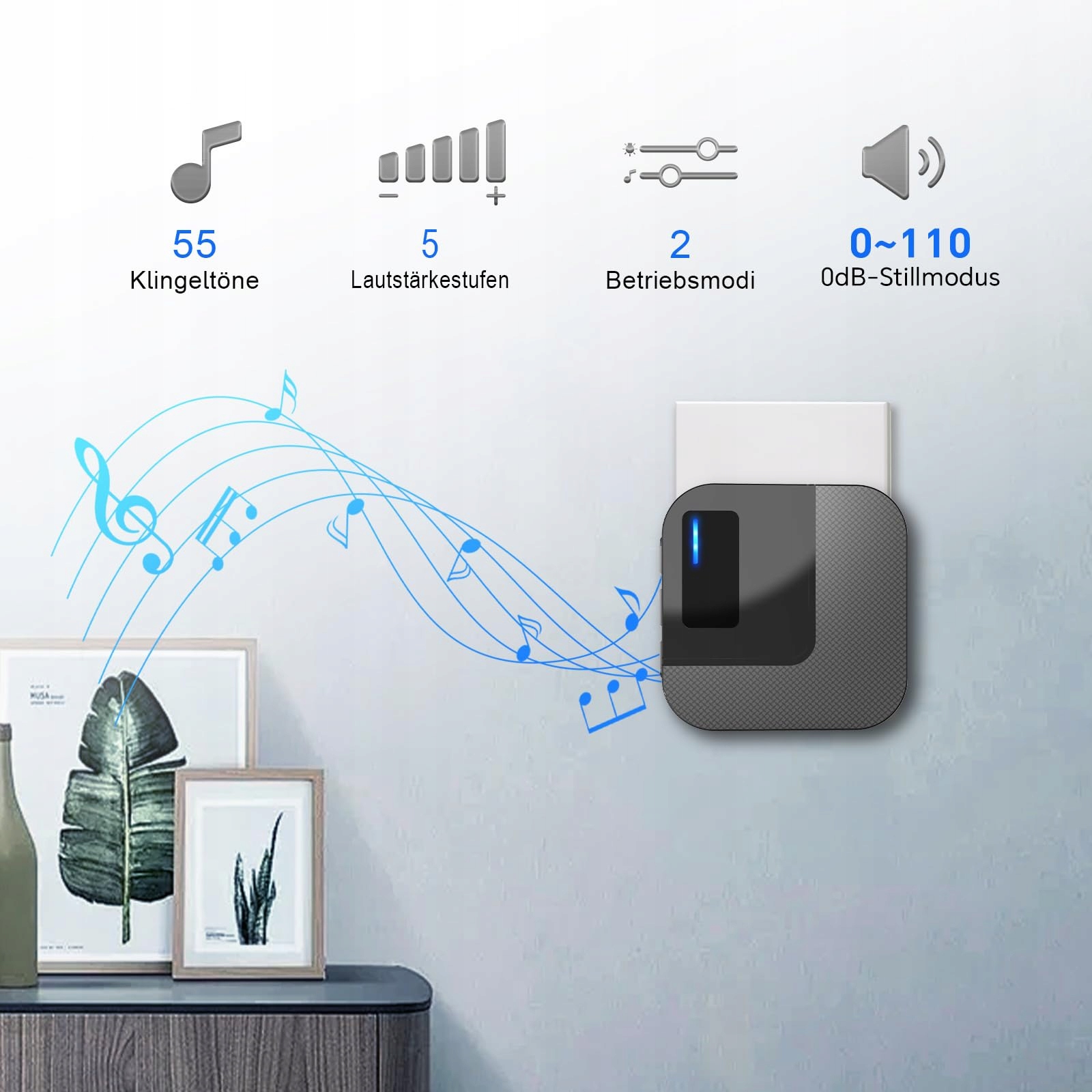 【Indywidualny dźwięk, elastyczne tryby】Ciesz się precyzyjną kontrolą z 5 poziomami głośności do 110 dB, idealnymi dla osób z problemami ze słuchem lub seniorów. Po prostu przełączaj między trybem tylko LED a trybem dzwonka + LED i wybierz spośród 55 melodii dla indywidualnych powiadomień. Twoje ostatnie ustawienia będą zapisywane dla nieprzerwanej wygody.