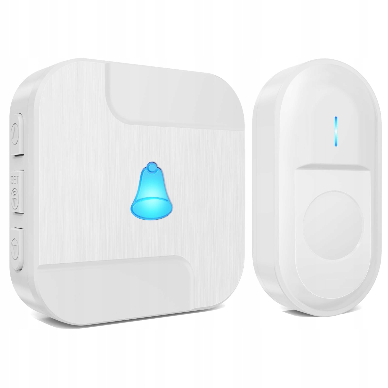 SURFOU Dzwonek bezprzewodowy na zewnątrz Wodoodporny Zestaw dzwonków bezprzewodowych Dzwonek na baterie, Dzwonek do drzwi 300m z odbiornikiem Plug In 55 melodii z Bożym Narodzeniem 5 poziomów głośności, Biały