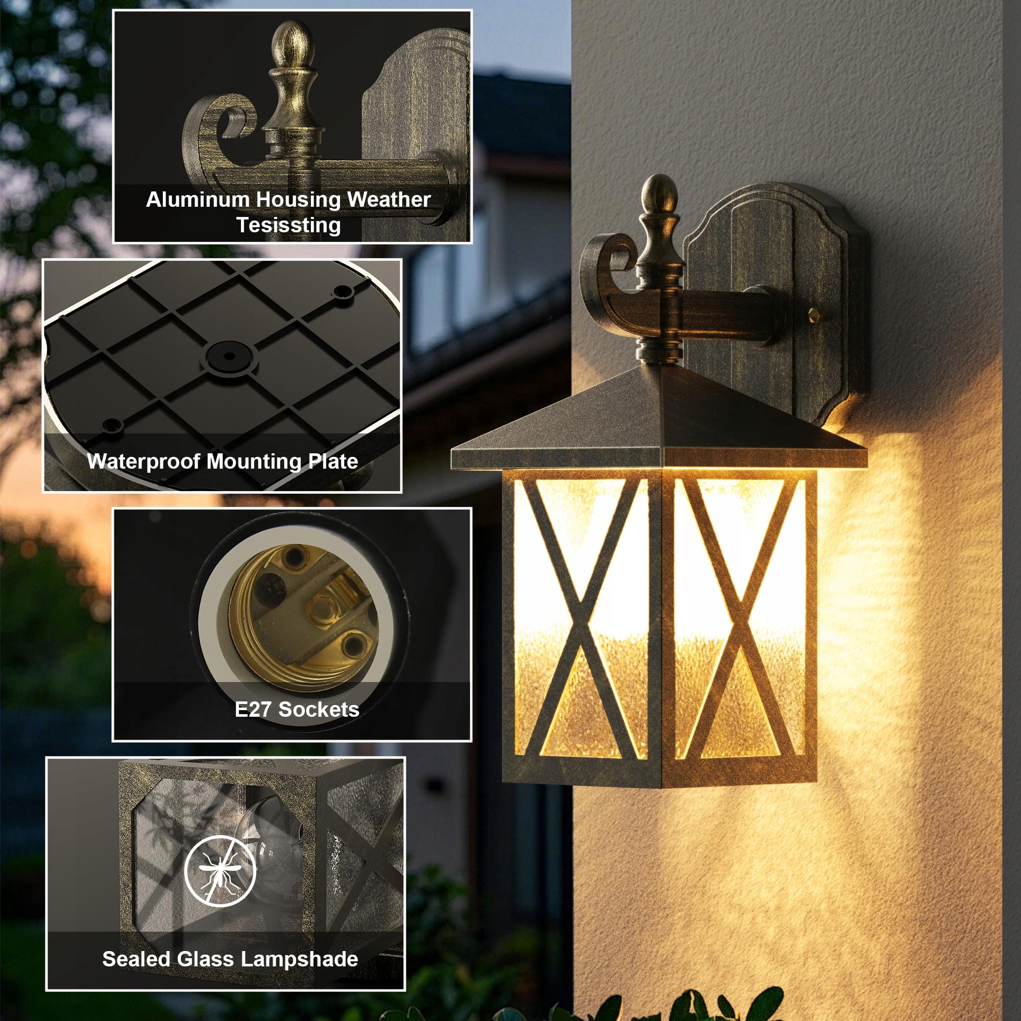 [Łatwa instalacja] - Ulepszyliśmy projekt produktu, integrując klosz odporny na owady u podstawy oraz wodoodporną tylną płytę, co umożliwia łatwą wymianę żarówki lub czyszczenie lampy. Lampa zewnętrzna jest dostarczana z instrukcją i akcesoriami montażowymi, dzięki czemu możesz łatwo zamontować lampę na ścianie. Ze względów bezpieczeństwa zalecana jest profesjonalna instalacja.