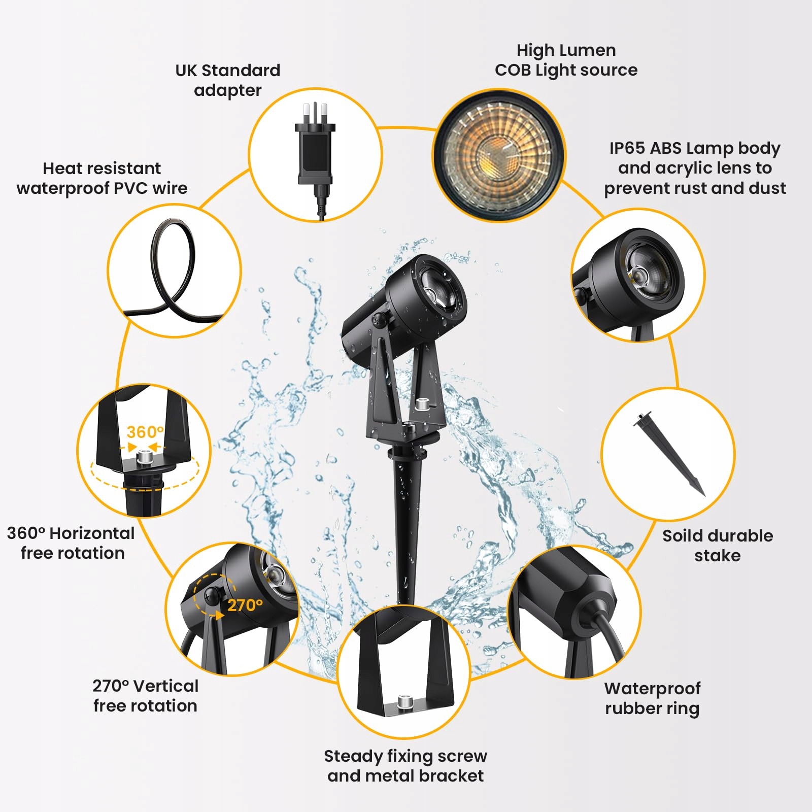 ☞[IP65 Odporne na Warunki Atmosferyczne]Temperatura pracy od -20℃ do 60℃, a dzięki wodoodporności IP65 i malowanym żelaznym stojakom na światła, ten reflektor na zewnątrz wytrzyma wszystkie ekstremalne słoneczne, deszczowe lub wietrzne dni.