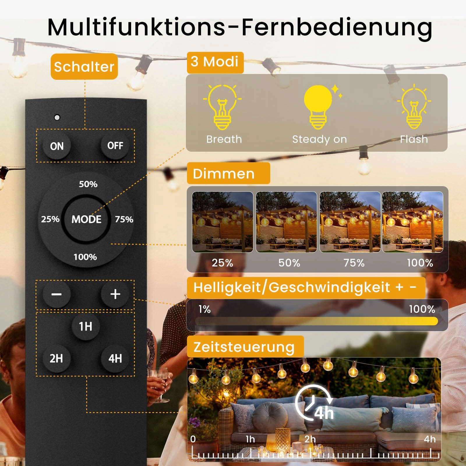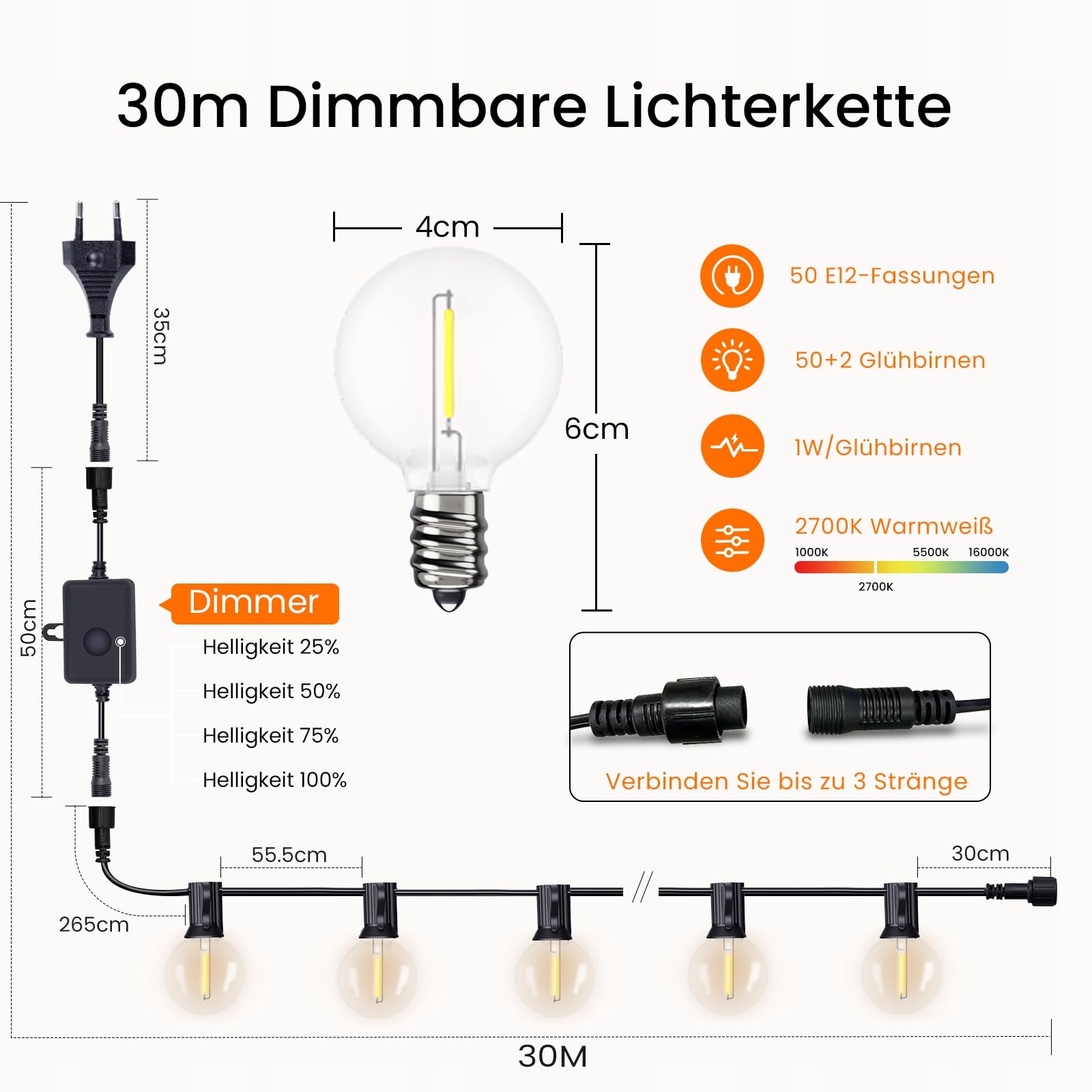 ✨[Łączone Światełka 2x30m]Zawiera 2x30m światełek, zdalnie sterowane girlandy ogrodowe mają połączenia od końca do końca, wspierają połączenie i kontrolę wielu sznurów, i mogą być również połączone z naszymi innymi girlandami G40/ST38 (z wyjątkiem girland solarnych).