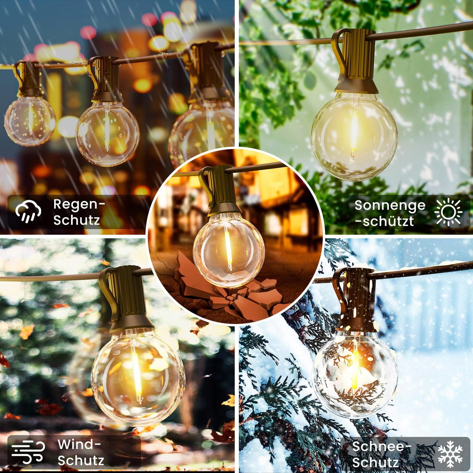 Toipwen Łańcuch świetlny na zewnątrz, 15 m, łańcuch świetlny LED, do użytku na zewnątrz, z 25 + 1 sztuką plastikowych żarówek G40, klasa wodoszczelności IP45, na zewnątrz i wewnątrz, na imprezy, [Klasa energetyczna E]