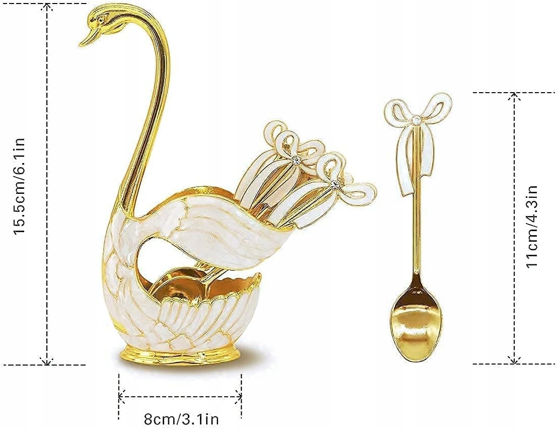 Szerokie zastosowanie: Łyżeczki mogą być używane jako łyżeczki do herbaty, do picia kawy lub napojów, a także do jedzenia deserów, owoców, sałatek. Stojak w kształcie łabędzia służy do przechowywania widelców i sztućców