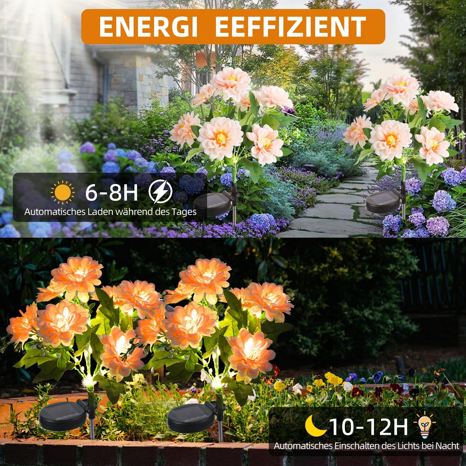 SYAKZK Lampy Solarne Do Ogrodu 2 Sztuki Kwiaty Dahlia IP65 Wodoodporne | Premium Supply