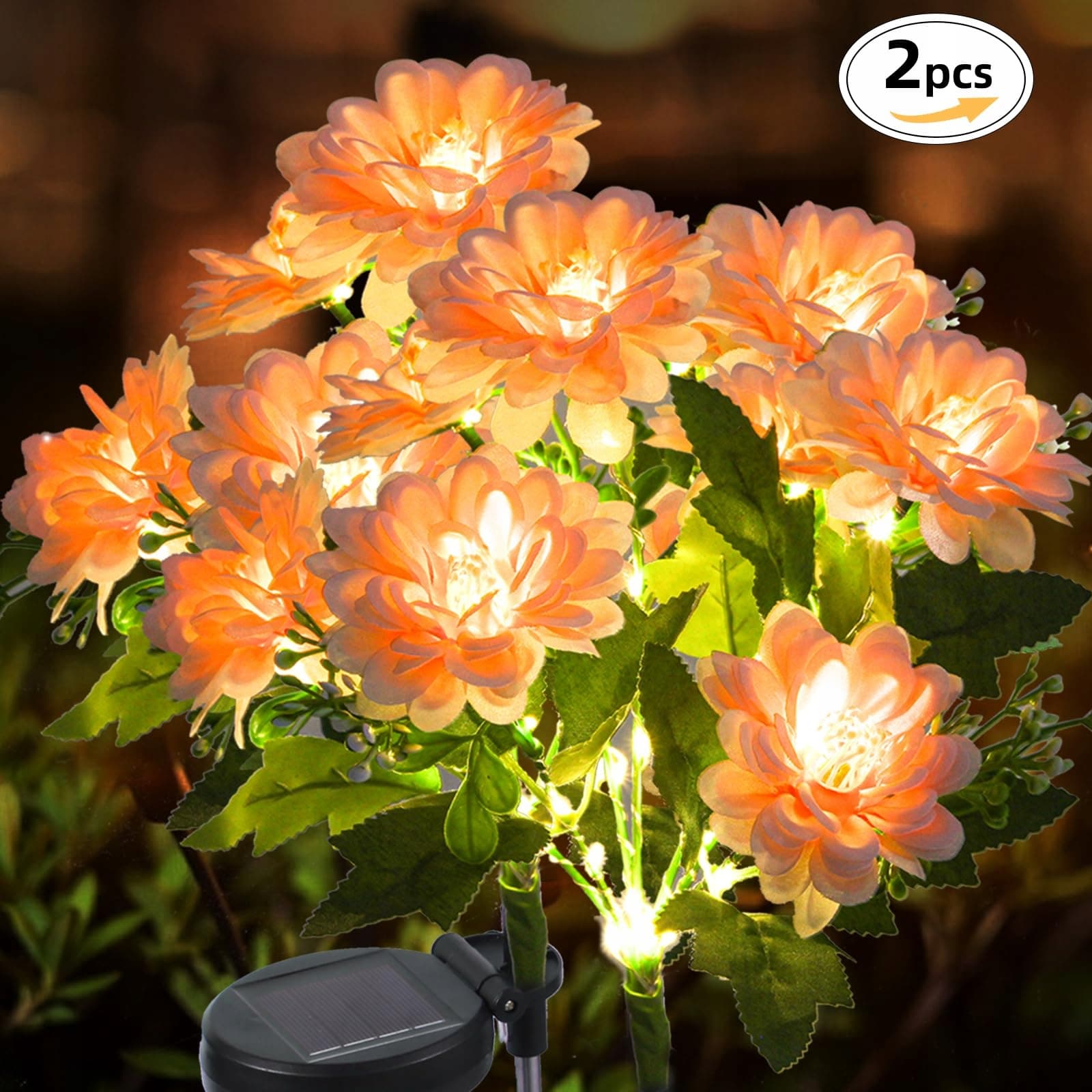SYAKZK Lampy solarne do ogrodu na zewnątrz, 2 sztuki lampy solarne dalie do ogrodu na zewnątrz, dekoracja ogrodowa na zewnątrz, wodoodporne, dekoracja ogrodowa, lampy solarne IP65, lampy ogrodowe solarne, ciepłe białe światło solarne