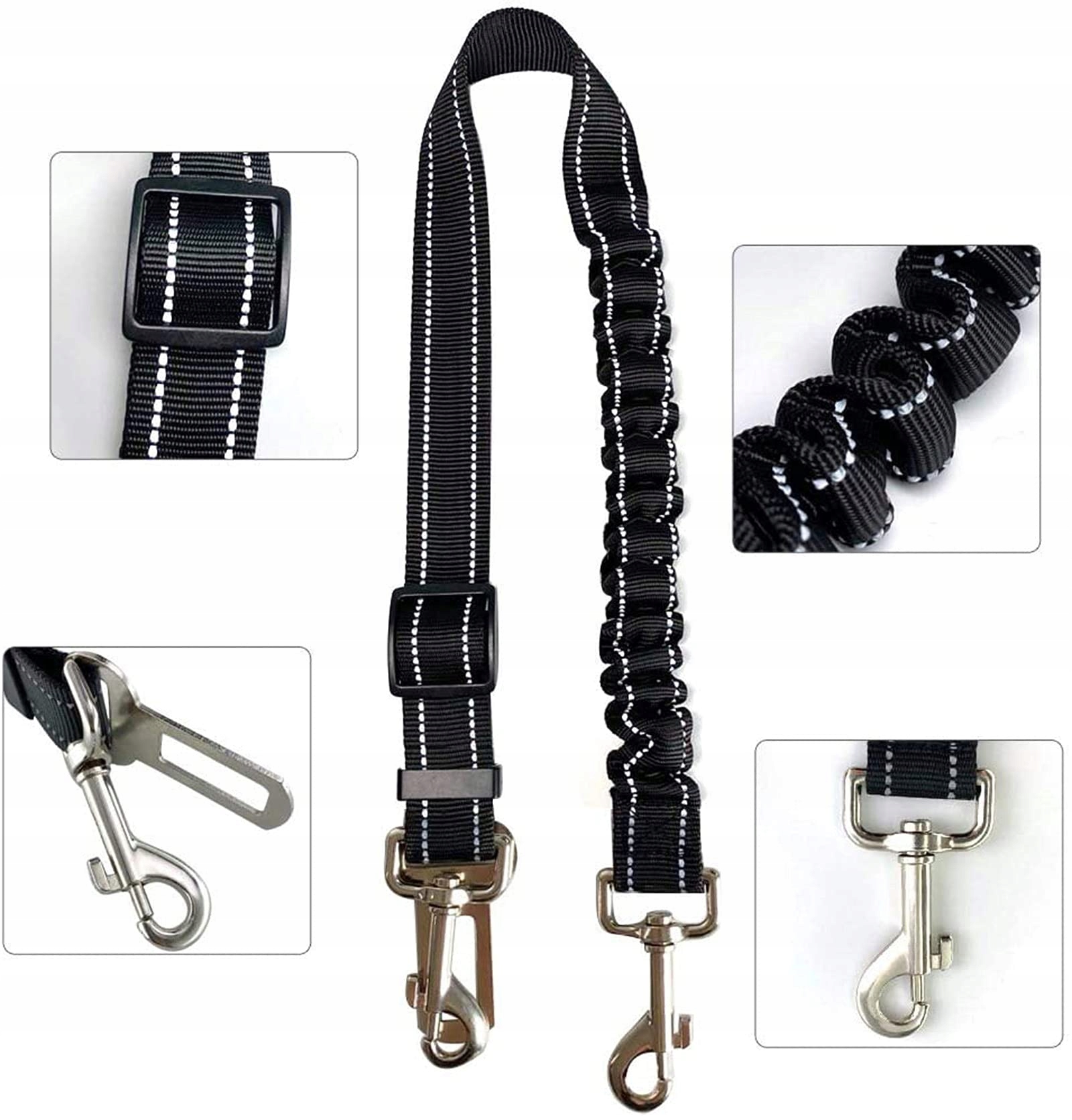 SYNCHAIN Pas Bezpieczeństwa Dla Psów 3w1 z Amortyzacją i Mocnym Karabińczykiem Dla Wszystkich Ras i Samochodów