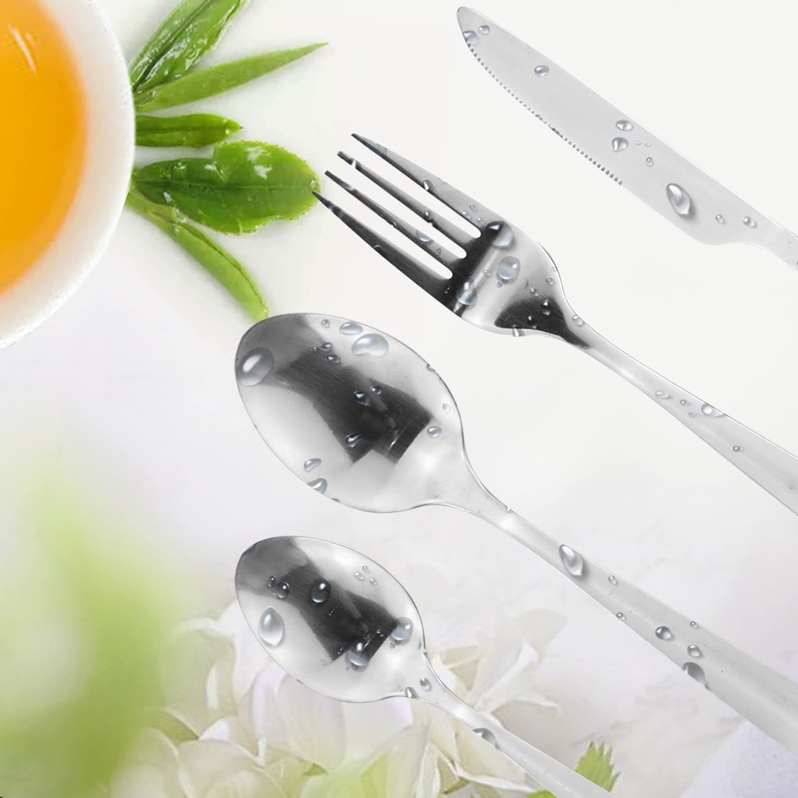 【Materiał produktu】 Nasz zestaw sztućców wykonany jest ze stali nierdzewnej, wystarczająco gruby, wytrzymały i trudny do odkształcenia, może służyć Ci przez długi czas, bezpieczny dla żywności, niezawodny materiał i przyjazny dla Twojego zdrowia.