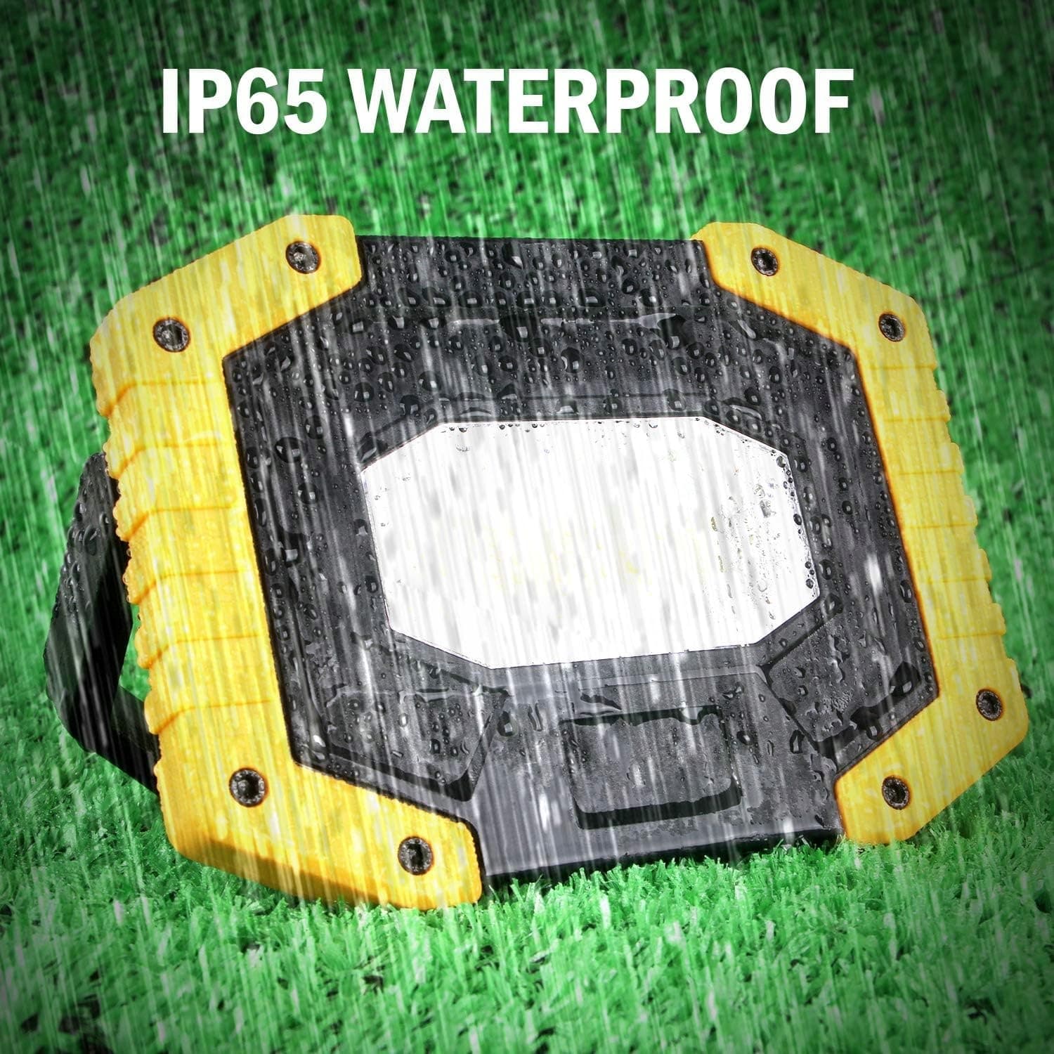 Reflektor LED roboczy, T-SUN reflektor budowlany na baterie, przenośny i wodoodporny z 2*akumulatorami, USB, 3 tryby światła dla placu budowy, garażu, warsztatu (1 sztuka)