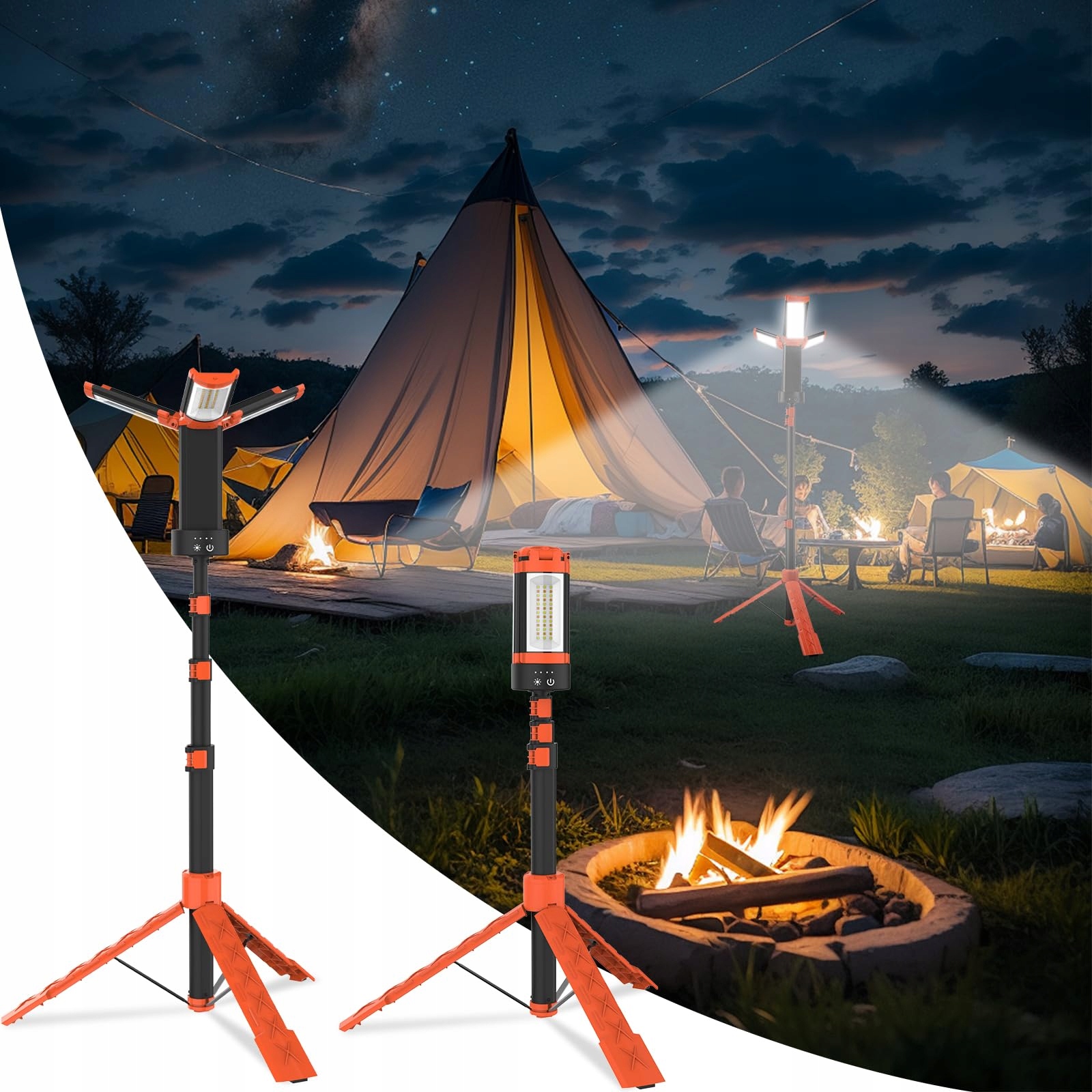 【💡Wielofunkcyjne oświetlenie zewnętrzne】Reflektor LED T-SUN z trójnogiem jest kompaktowy, lekki i bezprzewodowy. Stojak posiada funkcję blokady, która utrzymuje reflektory bezpiecznie na miejscu. Zapewnia oświetlenie podczas ciemnych przygód na zewnątrz. Idealny do kempingu, ogrodu, pracy na zewnątrz