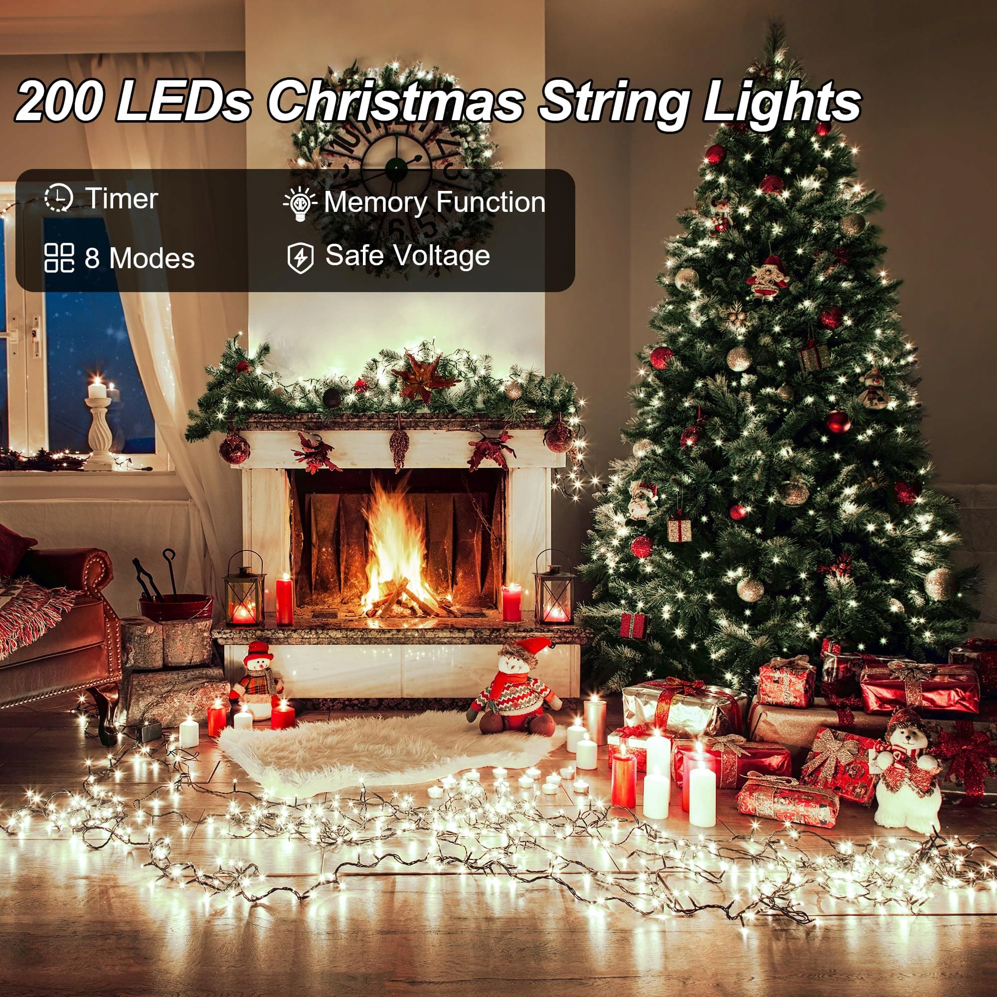 Tacobey LED łańcuch świetlny choinka na zewnątrz i wewnątrz z pilotem, 20M 200 LED oświetlenie świąteczne na zewnątrz zasilane prądem, timer, 8 trybów, wodoodporna dekoracja świąteczna łańcuch świetlny biały