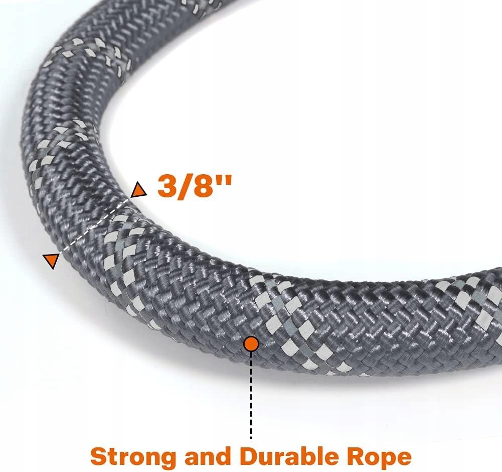 Trwałość i bezpieczeństwo: Smycz Taglory składa się z liny wspinaczkowej o grubości 1,0/1,2 cm i jest wzmocniona plecionym wzorem, który nie pozwala psom łatwo się uwolnić