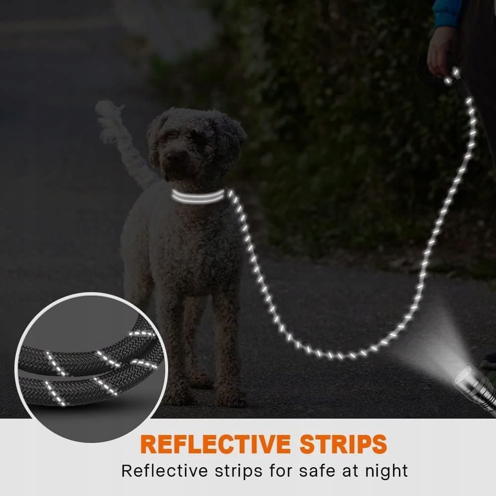 Funkcja odblaskowa: Odblaskowe szwy na smyczy są bardzo dobrze widoczne w nocy i przy słabym oświetleniu, co zapobiega niebezpiecznym sytuacjom spowodowanym słabą widocznością