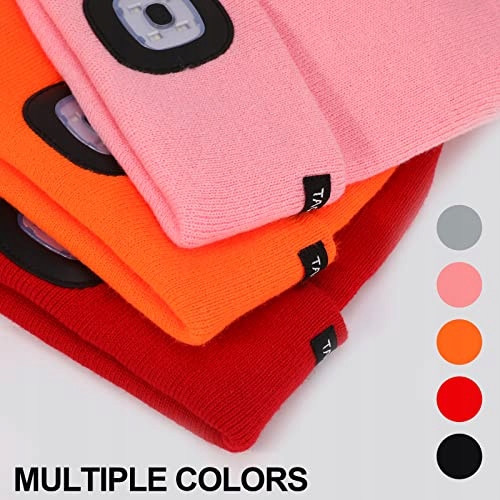 TAGVO USB Wielokrotnego ładowania czapka LED, 8 LED z trybami oświetlenia i migania, prosta instalacja, praktyczna czołówka, uniseksowa czapka dzianinowa na zimę