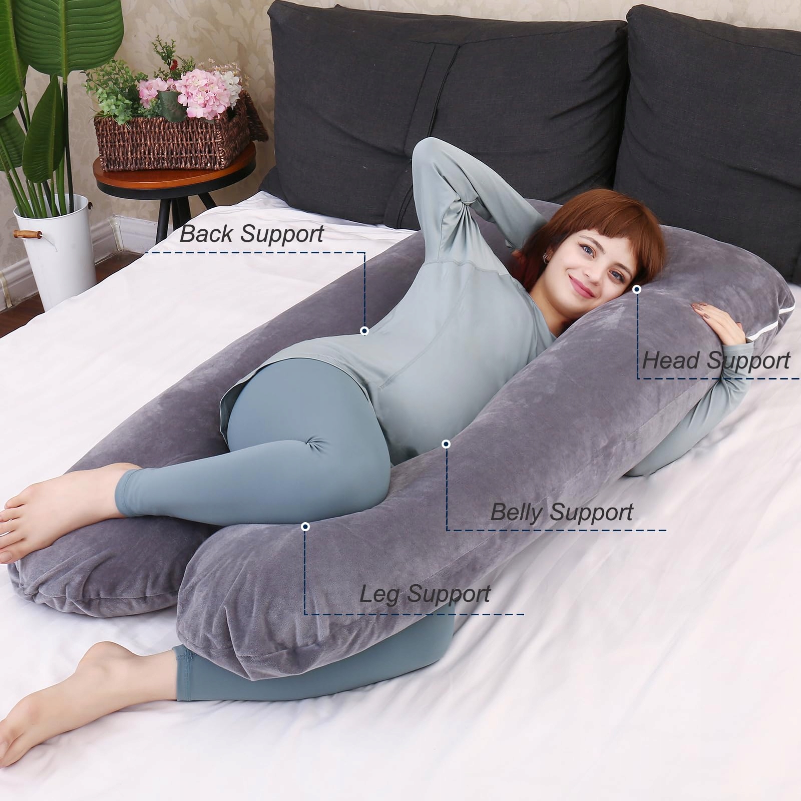 Wielofunkcyjna poduszka ciążowa - nasze poduszki ciążowe oferują wygodne pozycje do spania dla osób śpiących na plecach, brzuchu i bokach. Możesz również oprzeć się na poduszce, aby czytać lub oglądać telewizję. Aby zapewnić Ci komfortową i relaksującą przestrzeń.