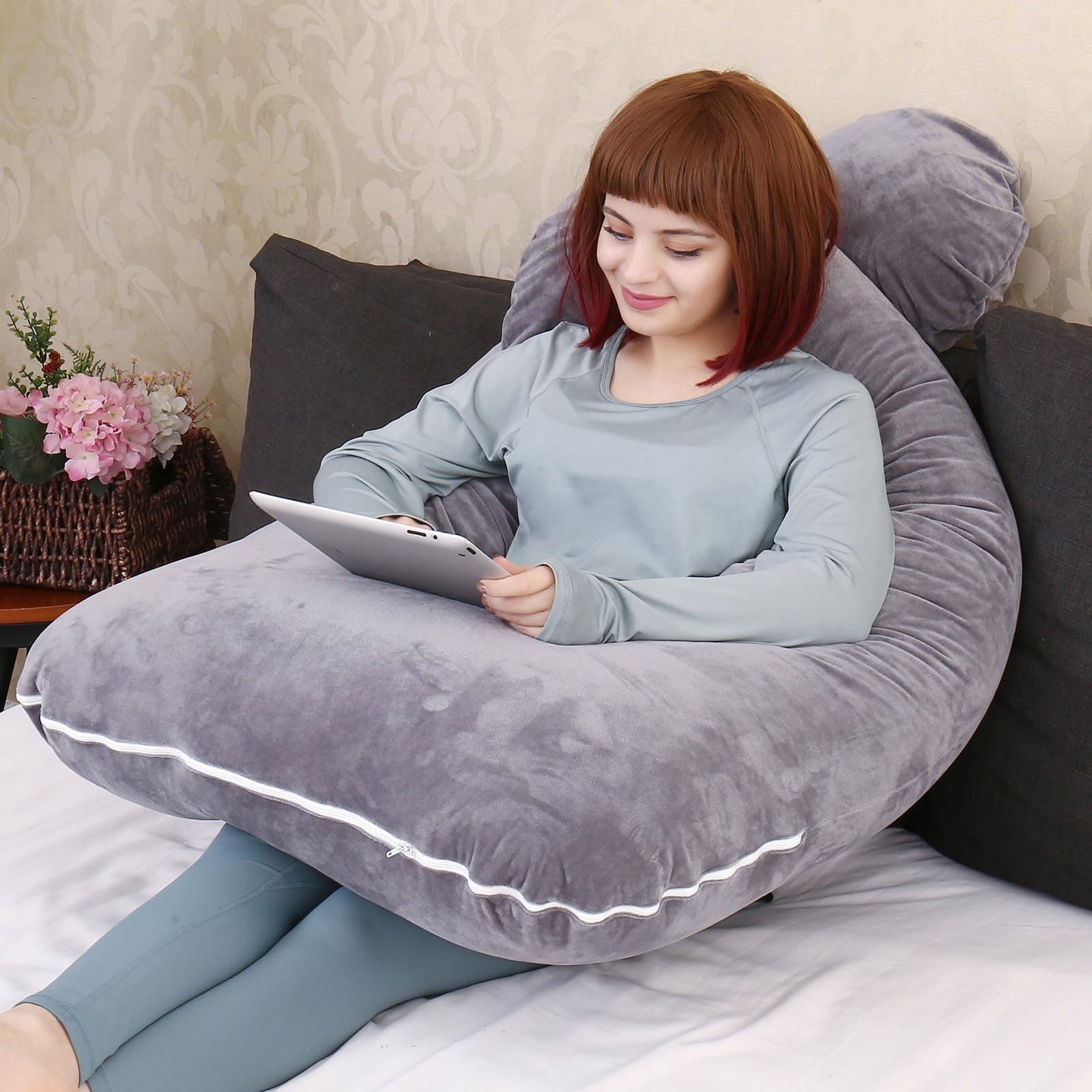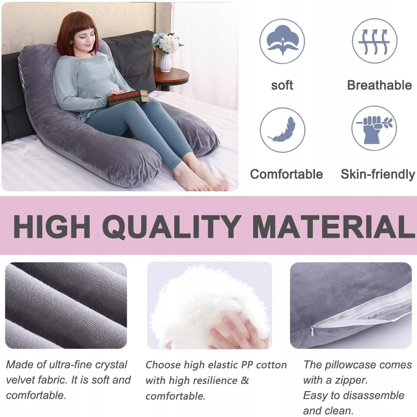 Pokrowiec nadający się do prania w pralce - pokrowiec na poduszkę dla kobiet w ciąży ma zamek błyskawiczny, co ułatwia zdejmowanie i czyszczenie. Miękki aksamitny pokrowiec zapewnia komfort przez całą noc.