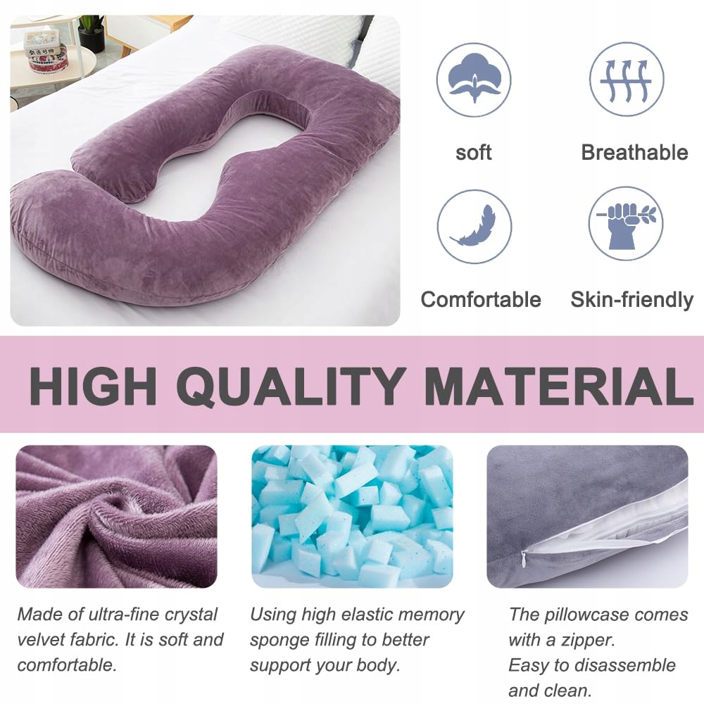 Poszewka do prania w pralce: Poszewka tej poduszki ciążowej ma zamek błyskawiczny, co ułatwia jej zdejmowanie i pranie. Miękkie poszewki z aksamitu zapewniają komfort przez całą noc.