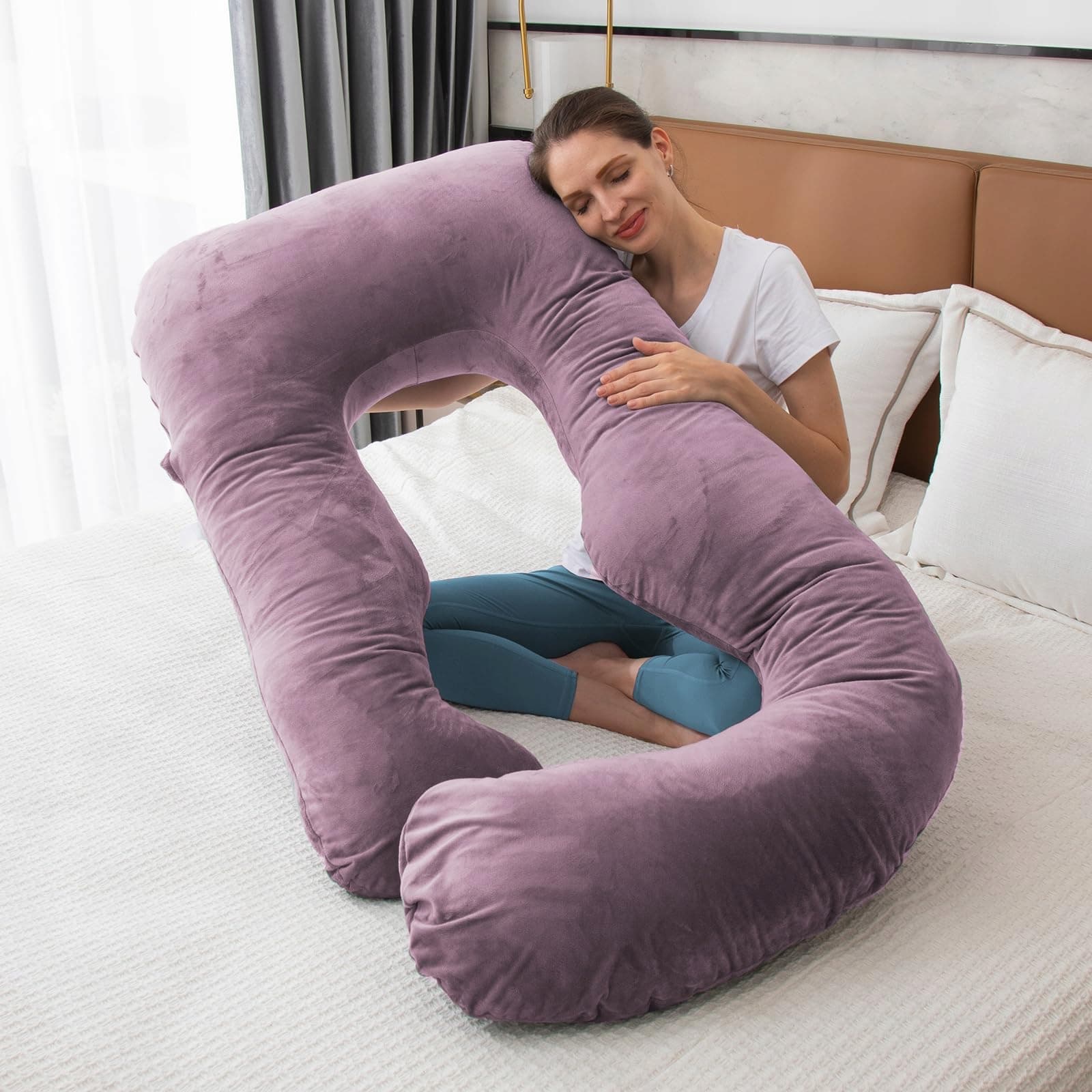TaiBest poduszka ciążowa z rozdrobnionej pianki pamięciowej do spania, poduszka macierzyńska dla kobiet w ciąży, wsparcie brzucha, w kształcie litery U, na całe ciało
