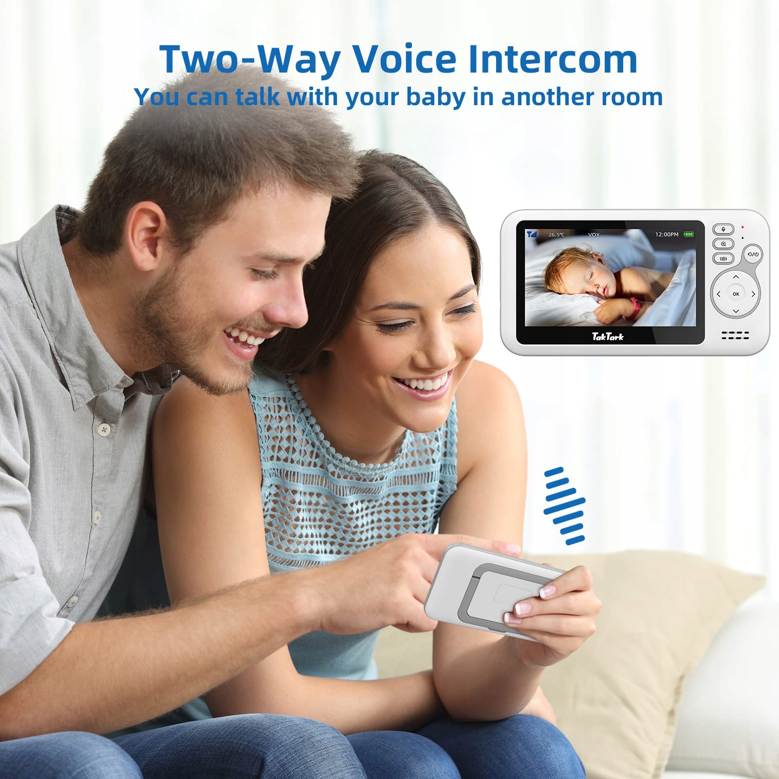 TakTark Niania elektroniczna z kamerą, 4,3'' Niania wideo, Niania z kamerą i dźwiękiem z VOX, funkcją dwukierunkową, nocnym widzeniem, cyfrowym zoomem, monitorowaniem temperatury i bez przeszkadzających świateł