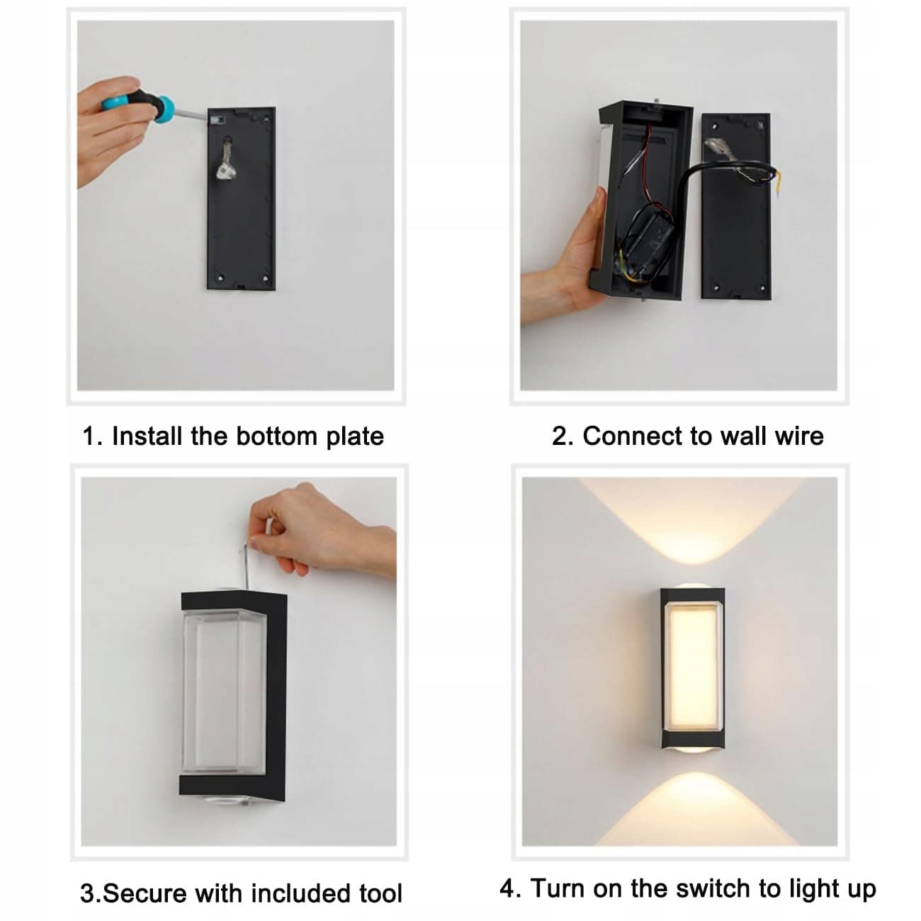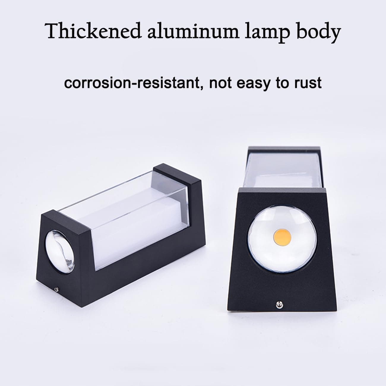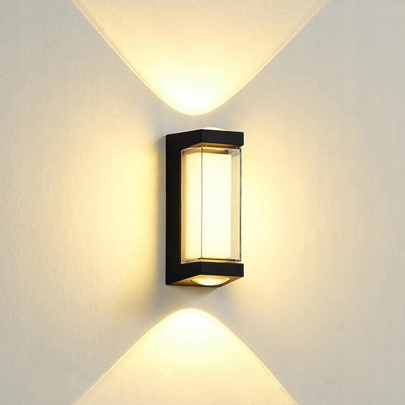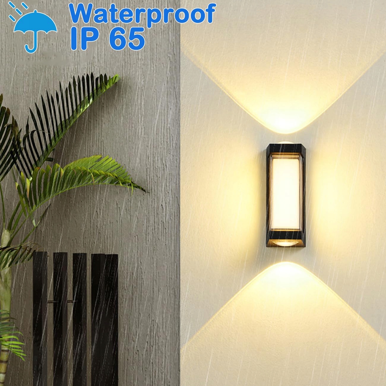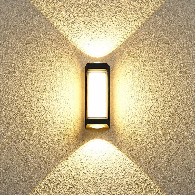 (Wysokiej jakości paski LED): Oświetlenie ścienne zawiera super jasne diody LED o wysokiej wydajności świetlnej. U góry i u dołu znajduje się LED-COB. Wodoodporność IP65, zapewnia, że oświetlenie działa dobrze w deszczowe dni.