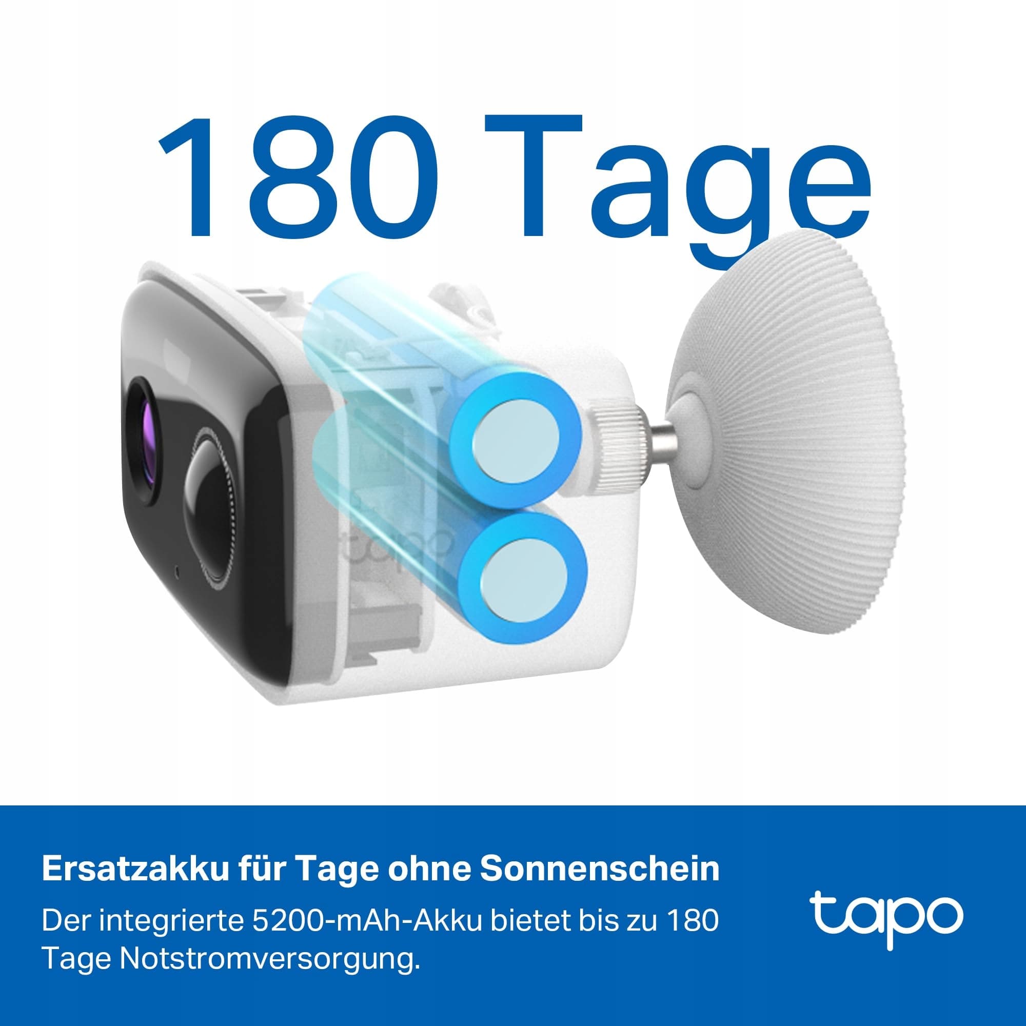 KOMPAKTOWA, ELASTYCZNA I BEZPRZEWODOWA: Wszechstronny zestaw Tapo C400 można zainstalować wszędzie na zewnątrz dzięki wbudowanemu akumulatorowi i panelowi solarnemu – bez plątaniny kabli. Idealna do domku ogrodowego, podjazdu lub tarasu.