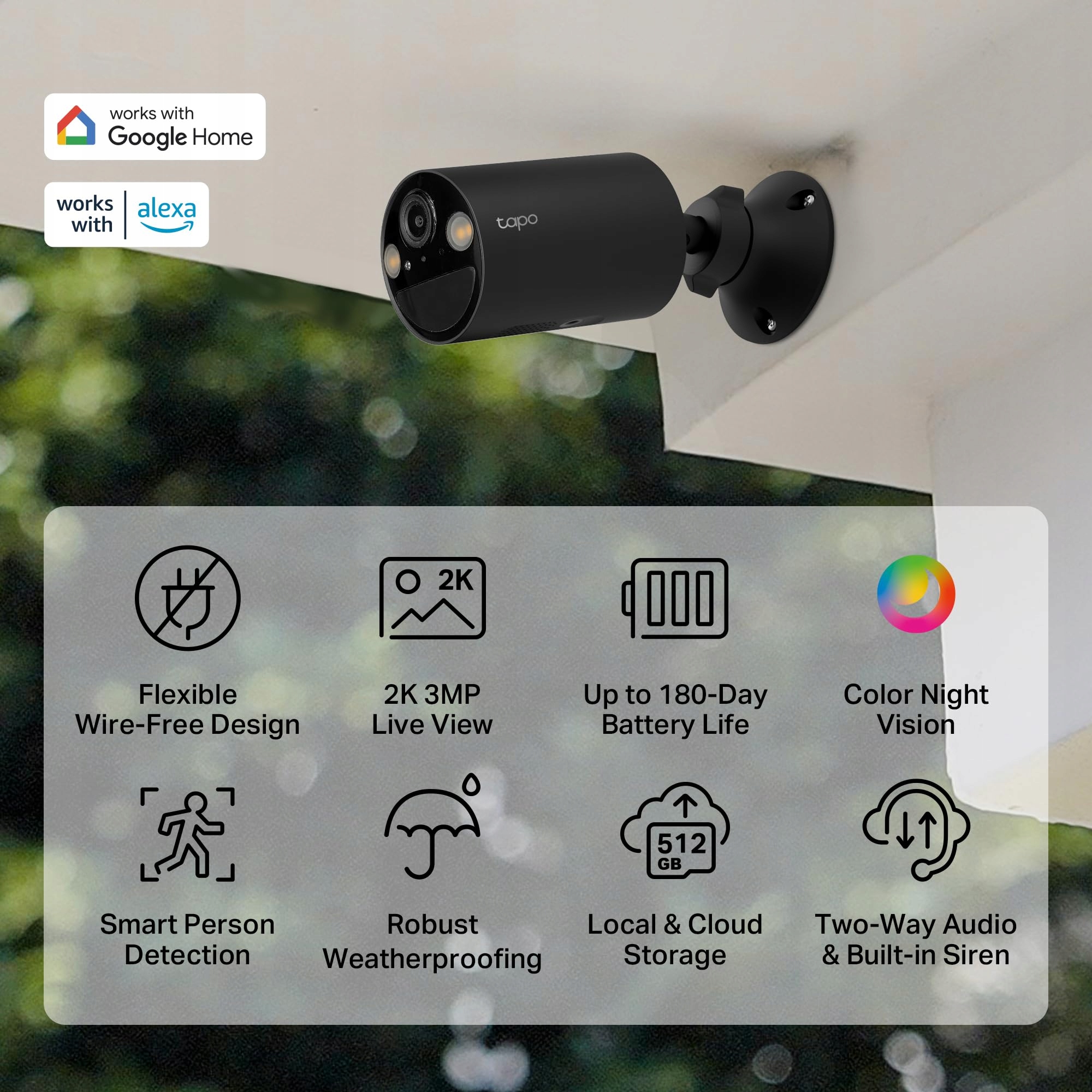KOLOROWA NOCNA WIZJA, NIE TYLKO CZARNO-BIAŁA: Dzięki rozdzielczości 2K-3MP, dużej przysłonie i wbudowanym reflektorom otaczasz swoje otoczenie żywymi kolorami – nawet w całkowitej ciemności do 9 metrów