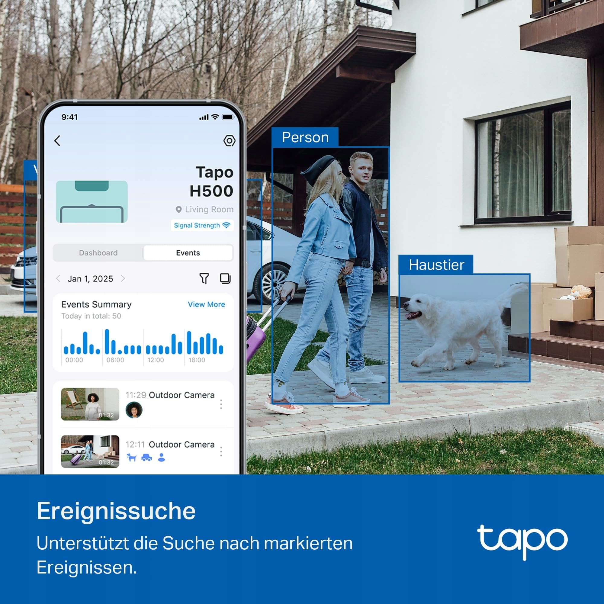 Tapo H500 CentralHub, 16GB wbudowane, pamięć rozszerzalna do 16TB, obsługuje 16 kamer i 64 czujniki, lokalna pamięć, HDMI, Wi-Fi 5 GHz/Ethernet, wbudowany alarm, Matter