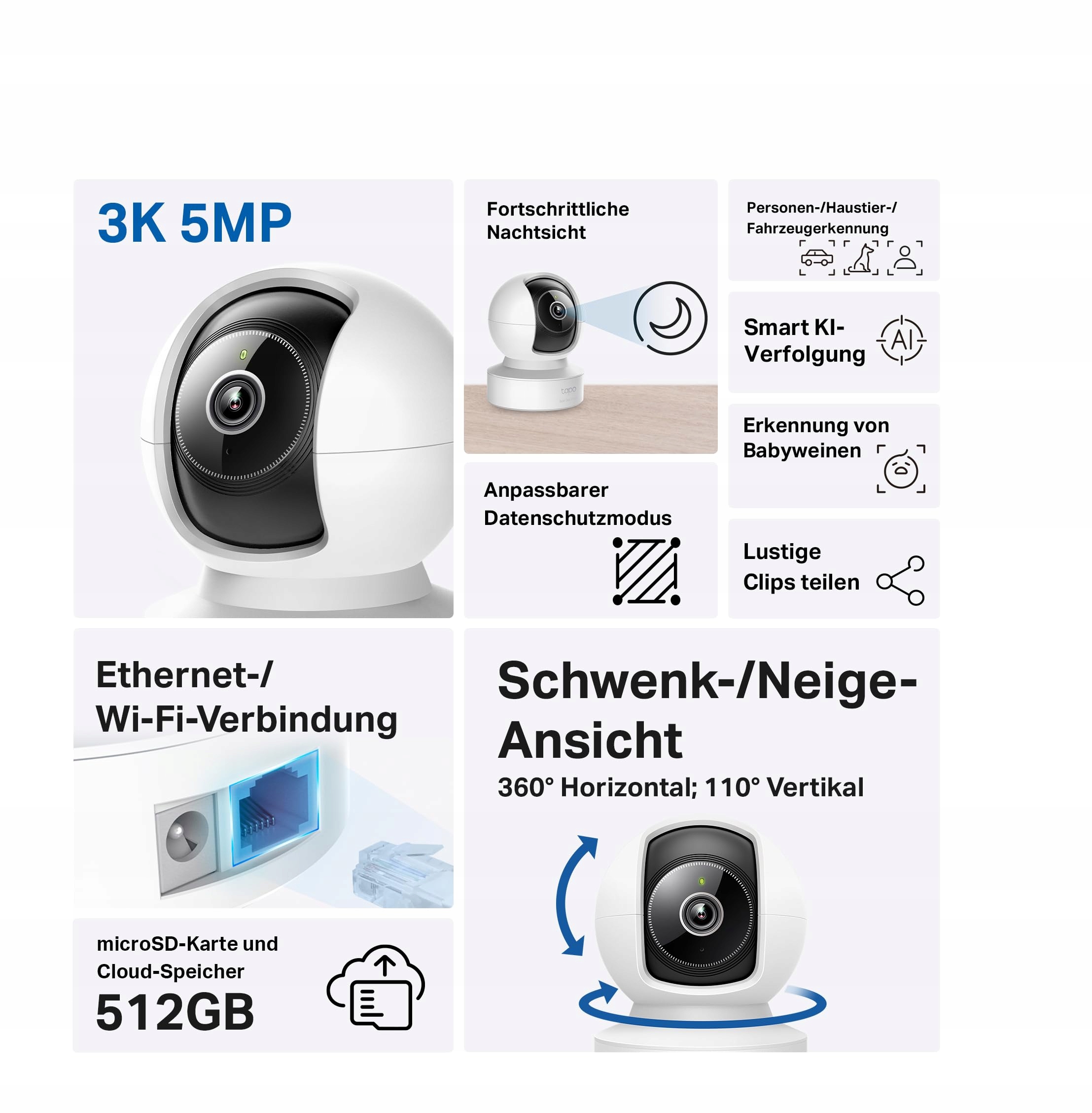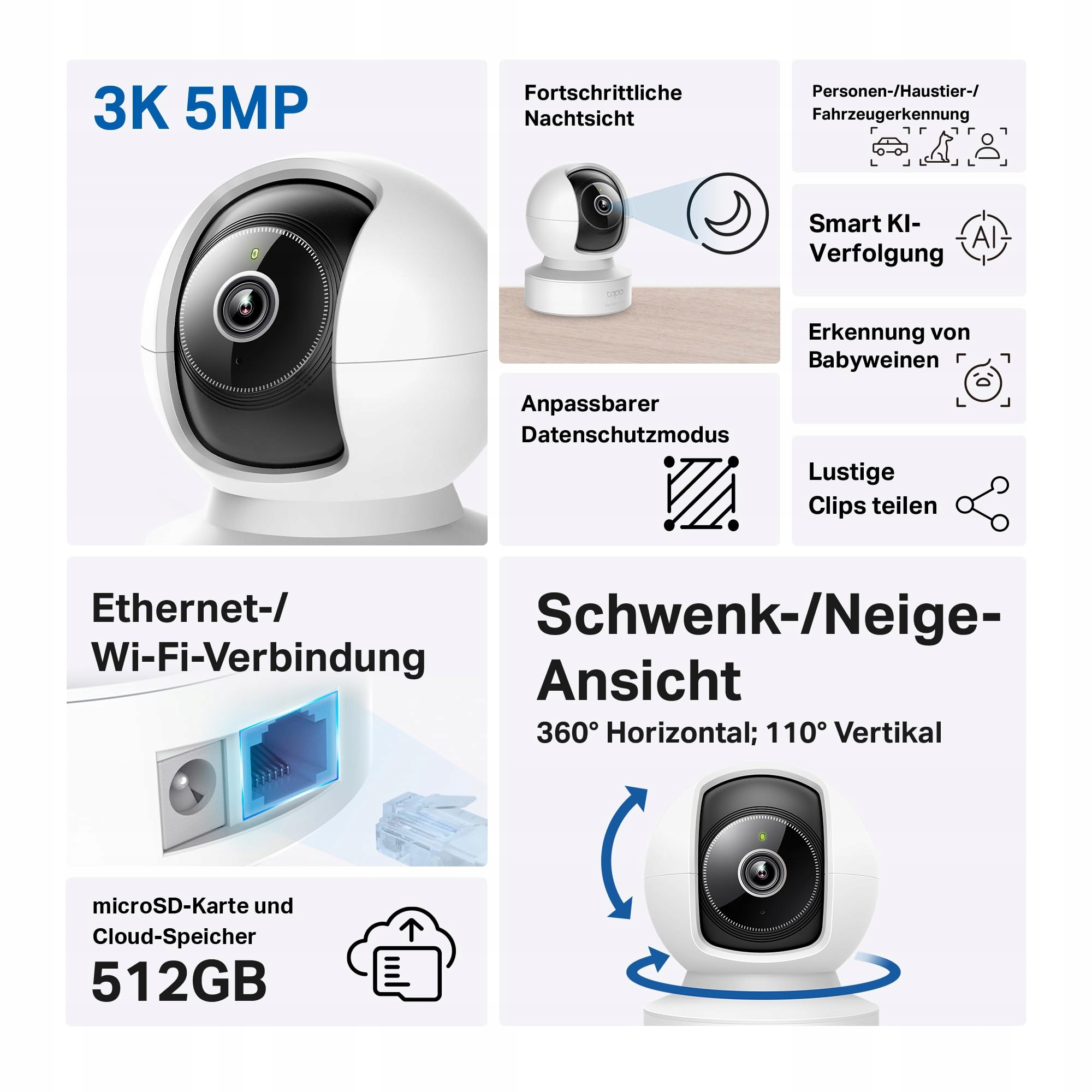 TAPO Kamera Obrotowa 360° 5MP Ethernet WLAN Nocna Mikrofon Alexa Google | Premium Supply