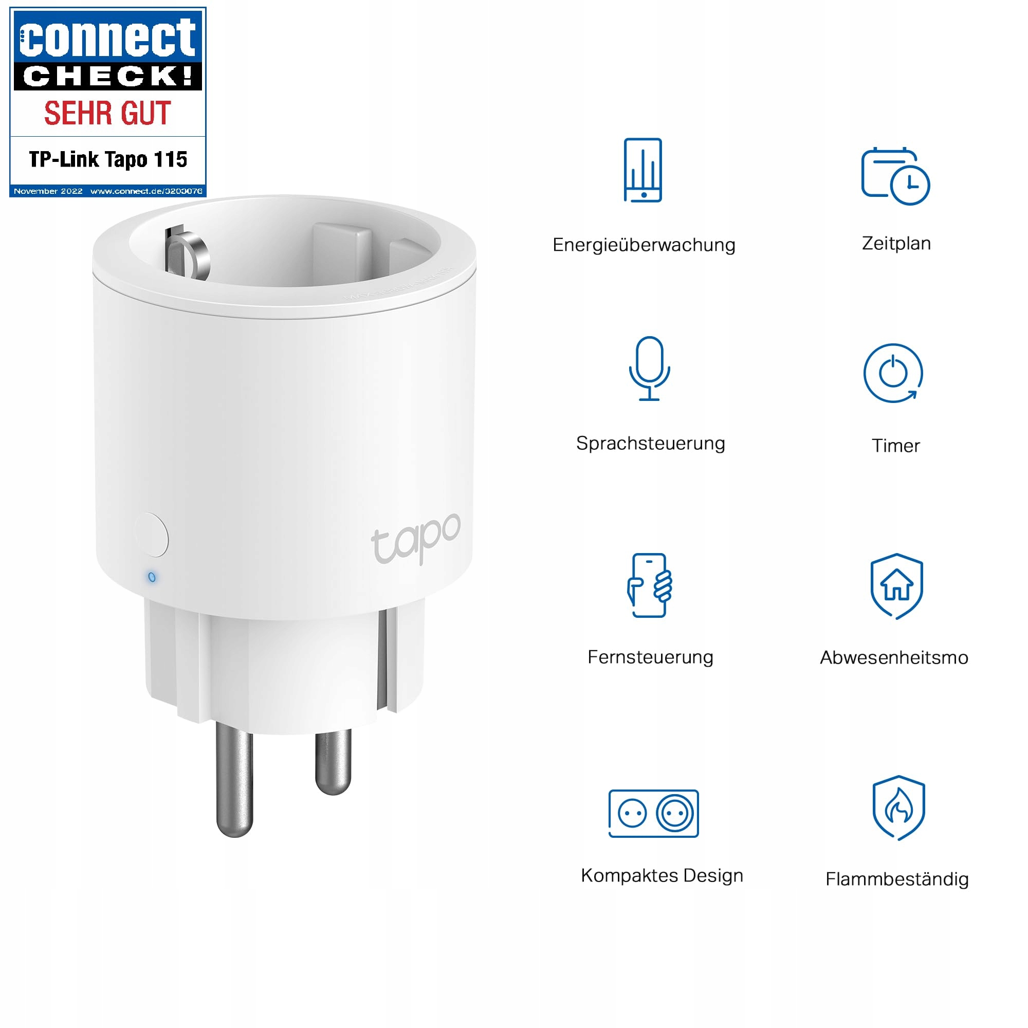 Gniazdko Tapo Nano Smart WLAN Tapo P115 z kontrolą zużycia energii, gniazdko Smart Home Alexa, działa z Alexą, Google Home, sterowanie głosowe, zdalny dostęp, bez potrzeby hubu