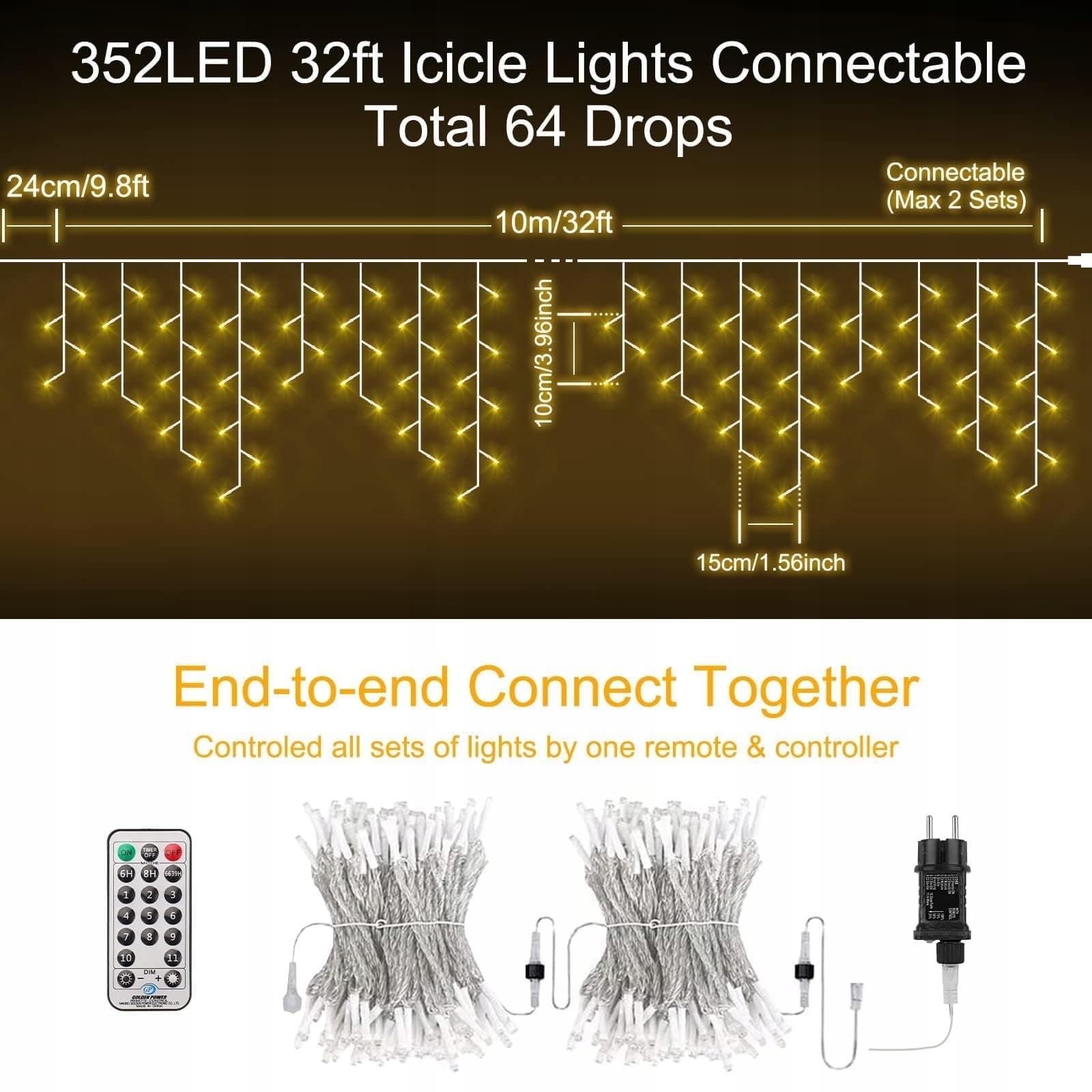 [Co otrzymasz] 1x 352 LED łańcuch świetlny; 1x wielofunkcyjny pilot; 1x pudełko; 1x wtyczka EU i 1x instrukcja.