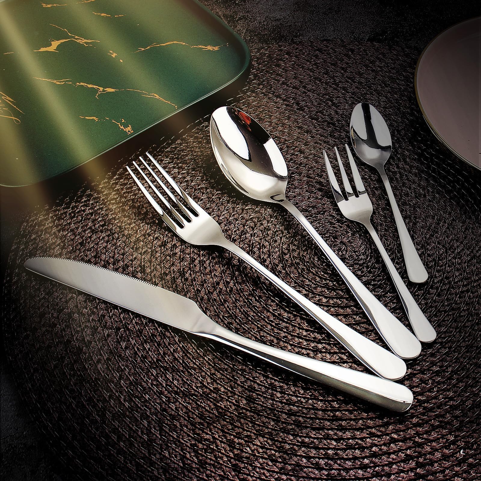 【Wysokiej jakości stal nierdzewna】Zestaw sztućców dla 6 osób wykonany z wysokiej jakości stali nierdzewnej, wolny od niklu i zdrowy do jedzenia. Wysokiej jakości sztućce ze stali nierdzewnej są trwałe i nie wyginają się łatwo, odporne na rdzewienie i korozję. Odpowiednia grubość i waga zapewniają wygodny chwyt, co poprawia Twoje doświadczenia kulinarne.