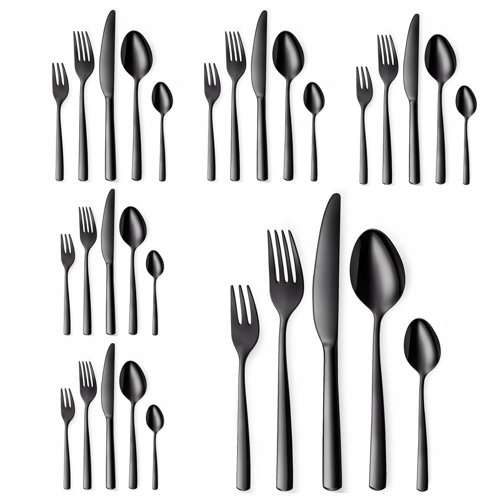 【Wysokiej jakości design】: Elegancki wygląd, prosty uchwyt, gładka powierzchnia i wysoki połysk utrzymują ten czarny zestaw sztućców błyszczącym, co czyni dekorację Twojego stołu elegancką i wyjątkową.