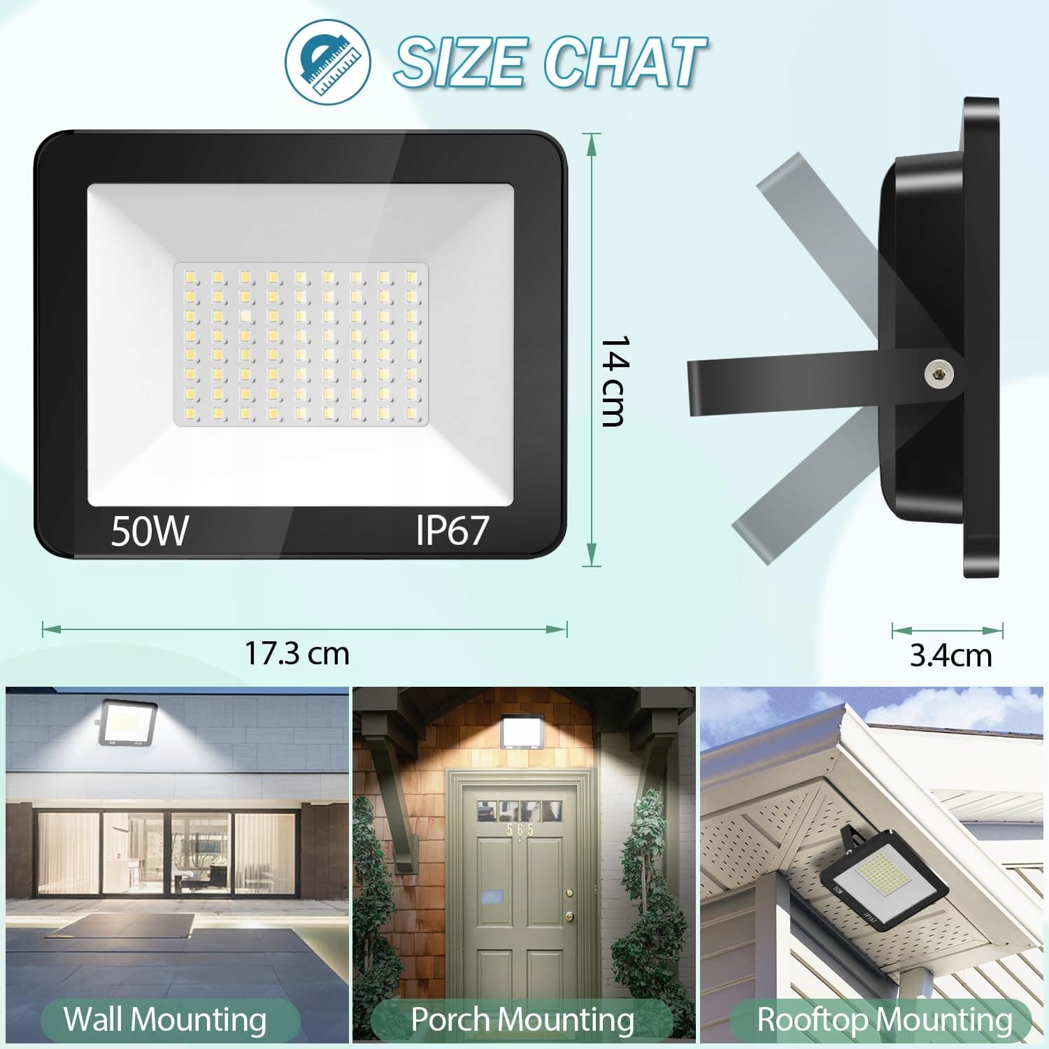 TASINUO LED Reflektor Zewnętrzny 50W - Zewnętrzny reflektor LED wodoodporny IP67, 5000LM 6500K zimna biel Superjasny reflektor floodlight do ogrodu garażu warsztatu podwórka tarasu