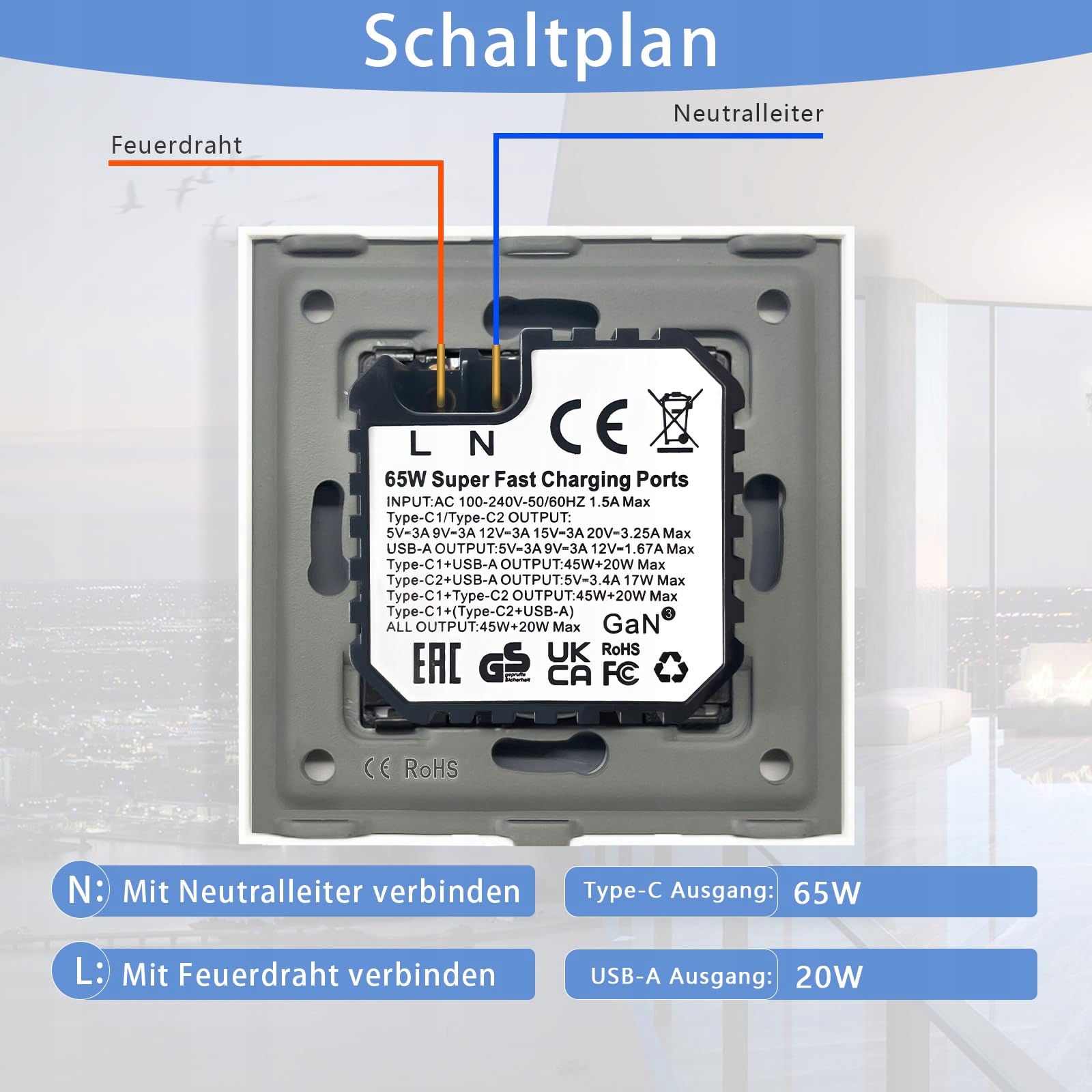 Łatwa instalacja: Zazwyczaj należy osobno podłączyć przewód L, przewód N i przewód uziemiający. Głębokość montażu musi wynosić więcej niż 40 mm.